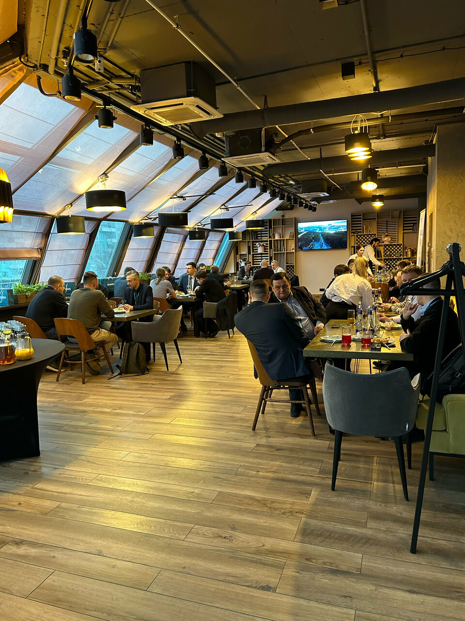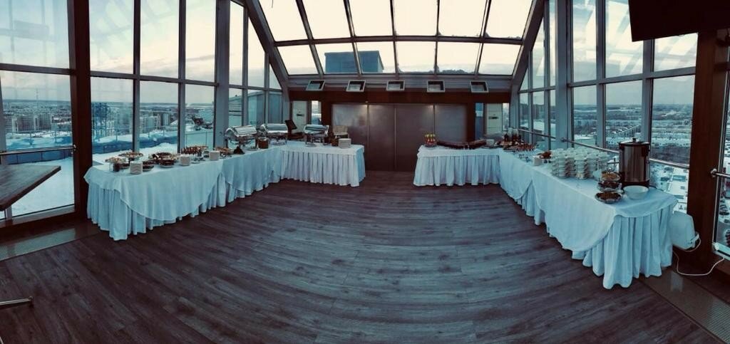 Изысканный, уютный, уникальный банкетный зал «Облака» комфортно разместит 50 персон. Главное украшение пространства – огромные панорамные окна с завораживающим видом на город Сургут.