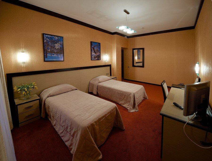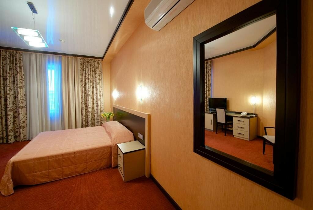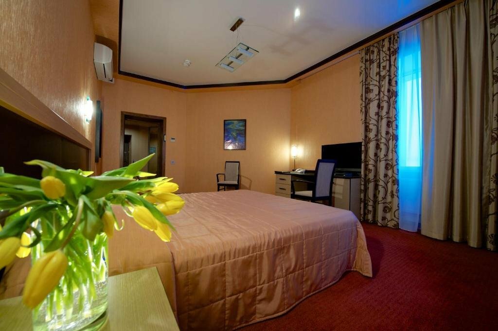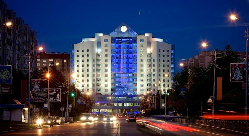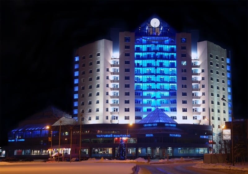 Лучший отель в Сургуте. Расположен в центре города в бизнес и торговом центре. На втором этаже 2 отличных ресторана, можно никуда не выходить. В одном из них вкусные разнообразные завтраки. Можно по талону отеля бесплатно посетить кинотеатр. Номера советую только категории комфорт. Остальное — пока еще совок с запахом восьмидесятых. Чисто, в номере вода и принадлежности для чая. Небольшой холодильник. Несколько раз были номера с небольшим балконом с панорамным видом на город. Приятно вечером посидеть, глядя на движение машин. Отдохнуть или поработать. Была в этом городе несколько десятков раз. И всегда останавливаюсь тут, когда есть места.