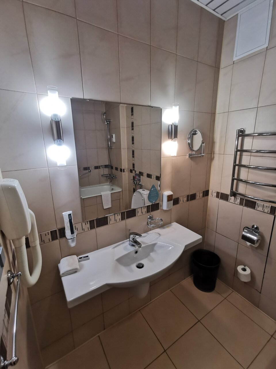 Отель хороший. Вот вообще без вопросов. Конечно если бы подешевле, было бы вообще вау. Номера не сказать чтобы просторные, но в целом места хватает. Телевизор, холодильник, чайник. Отдельное спасибо за утюг и доску в номере. Кто ленится — услуги прачечной. В целом при определённом уровне доходов — рекомендую.