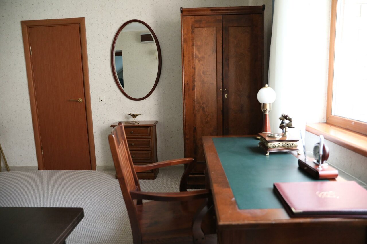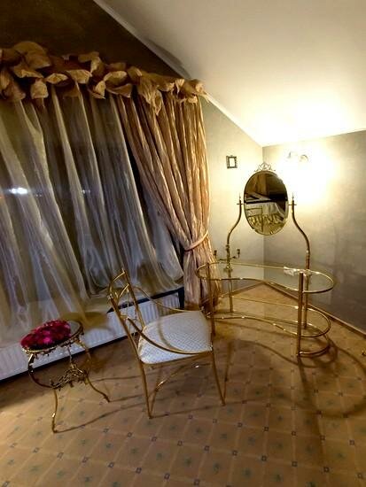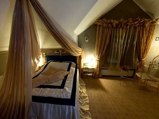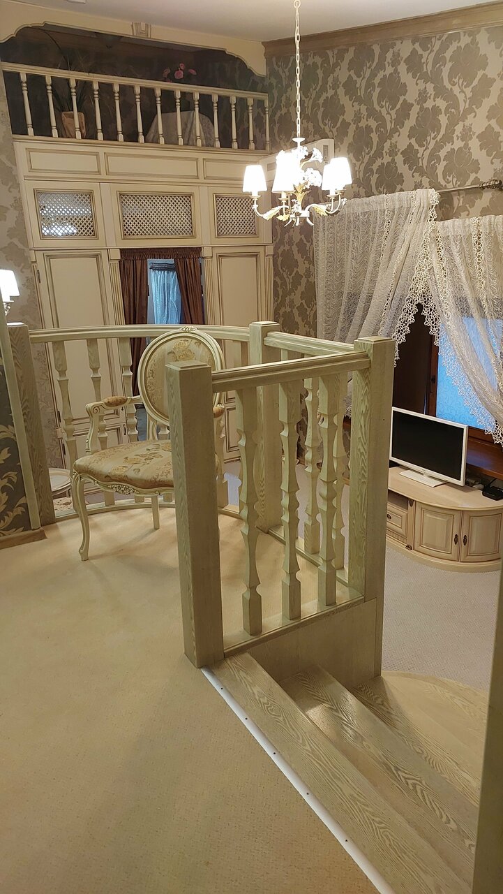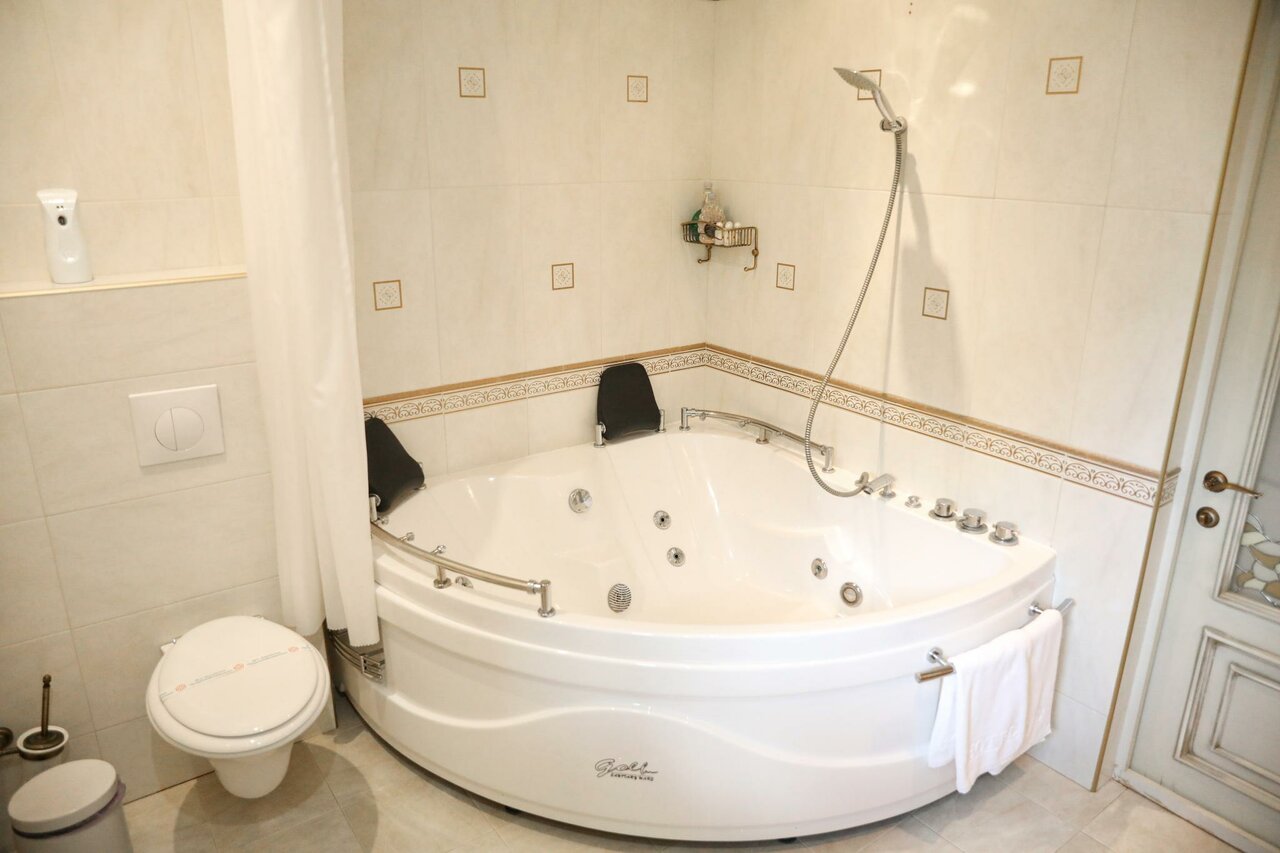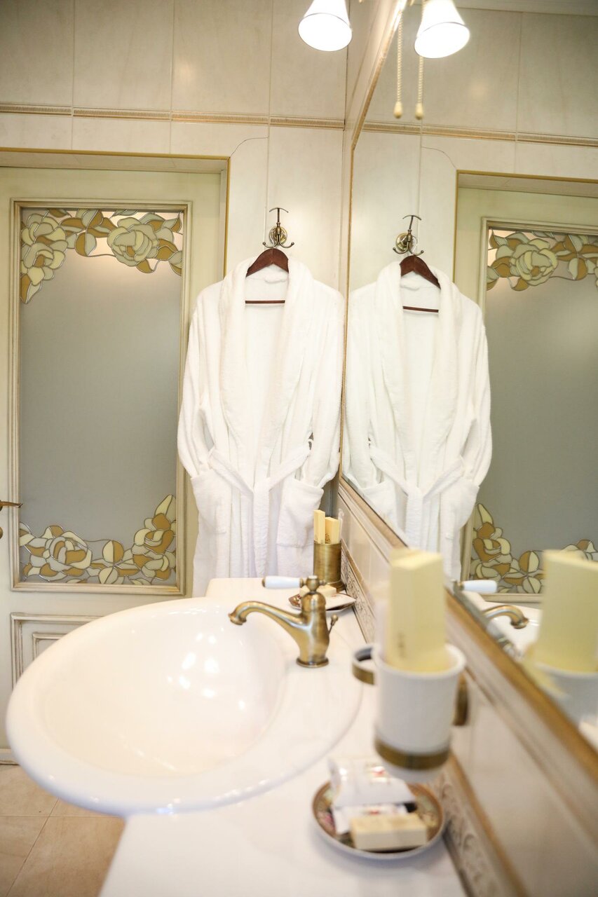 Двухкомнатный номер, удобная комната-кабинет для отдыха, в которой предусмотрена рабочая зона. Спальня, в которой вы обнаружите удивительно изящную мебель с элементами стиля «ампир», роскошная двуспальная кровать размера «kingsize» с балдахином.