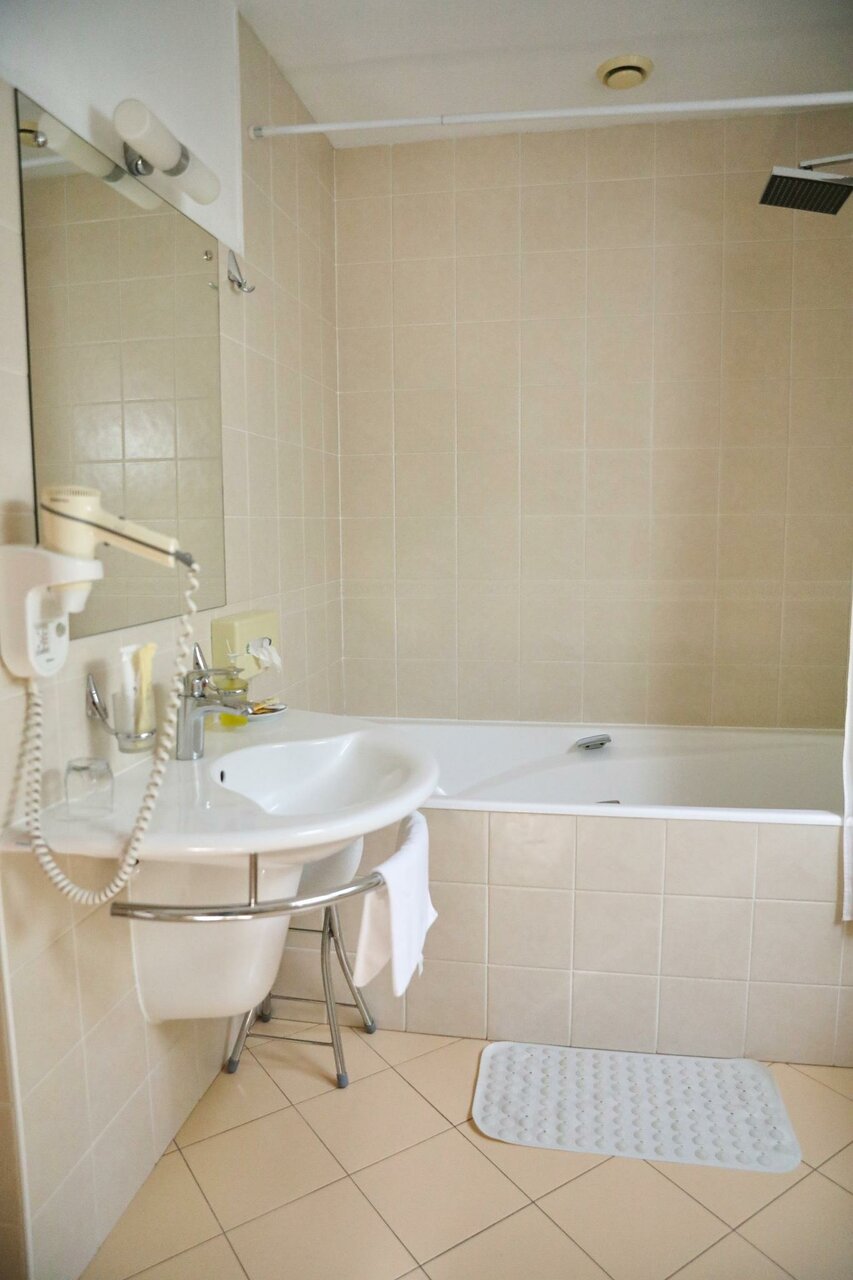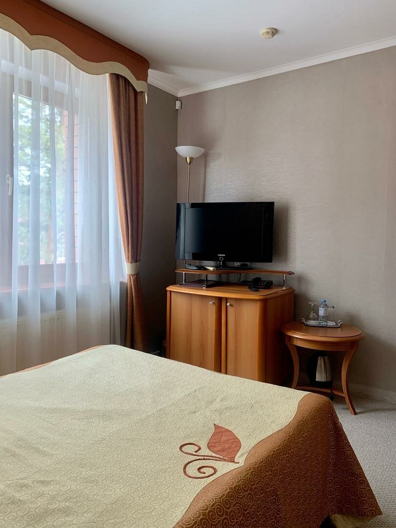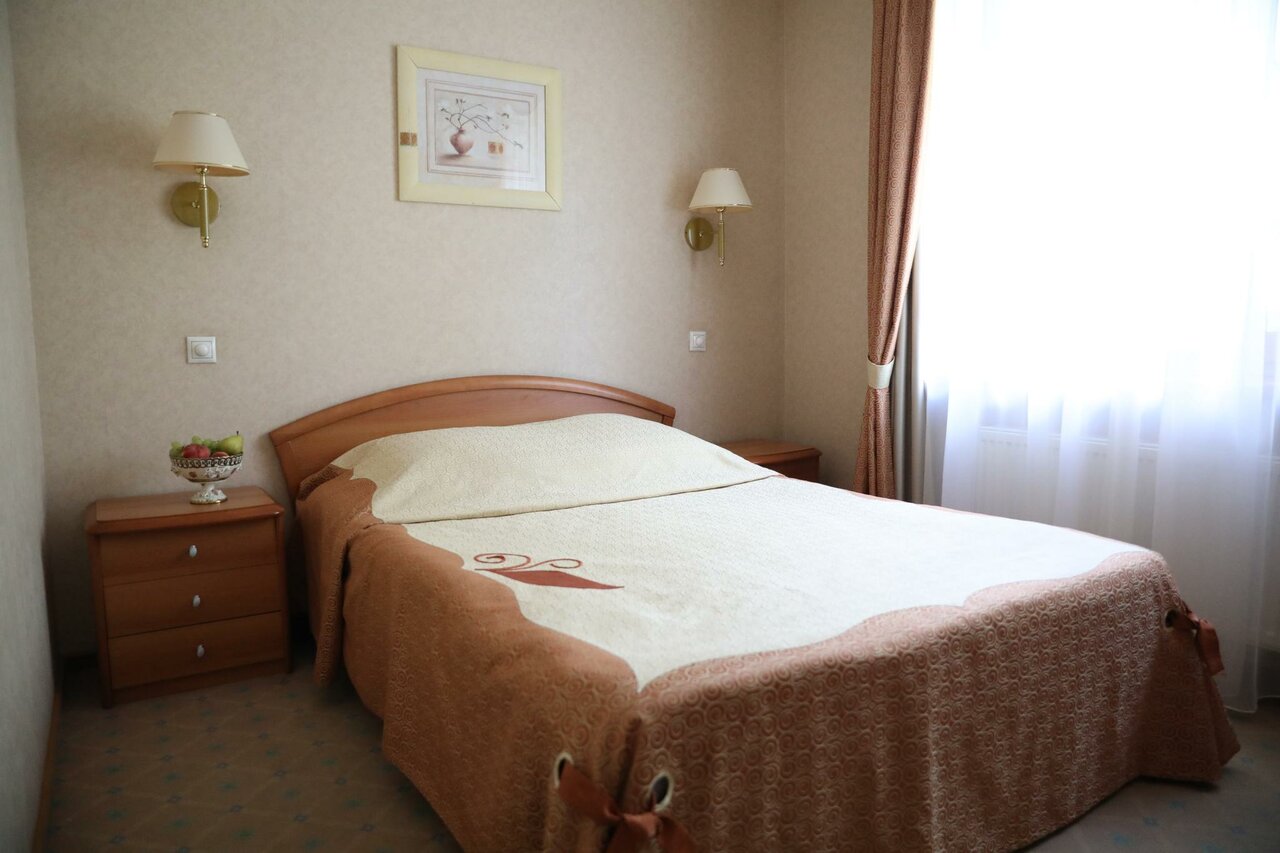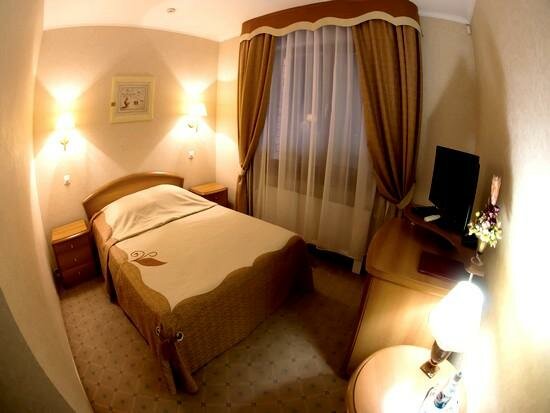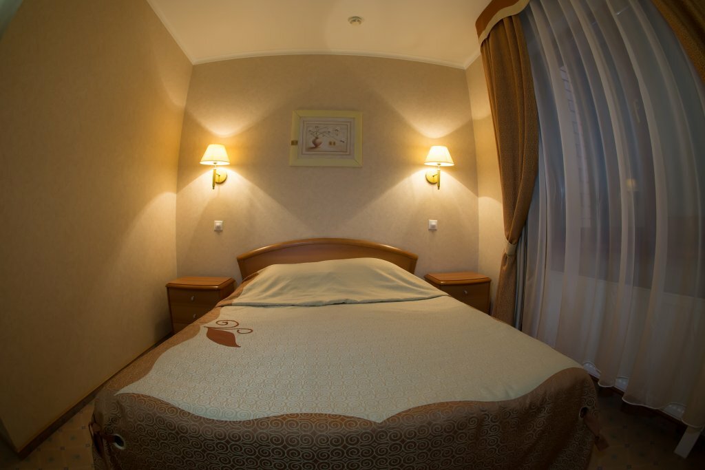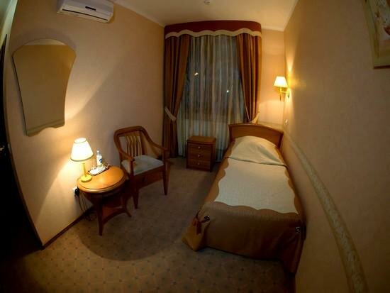Одноместный номер категории «Комфорт». Телевизор, телефон, кондиционер, мини бар, сейф. Санузел: просторной душевой, раковиной, унитазом, феном, махровыми полотенцами, тапочками, гигиеническими принадлежностями.