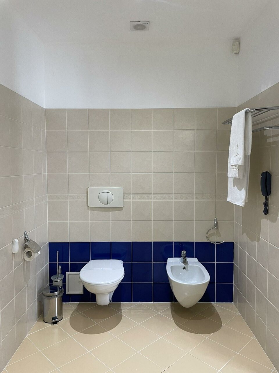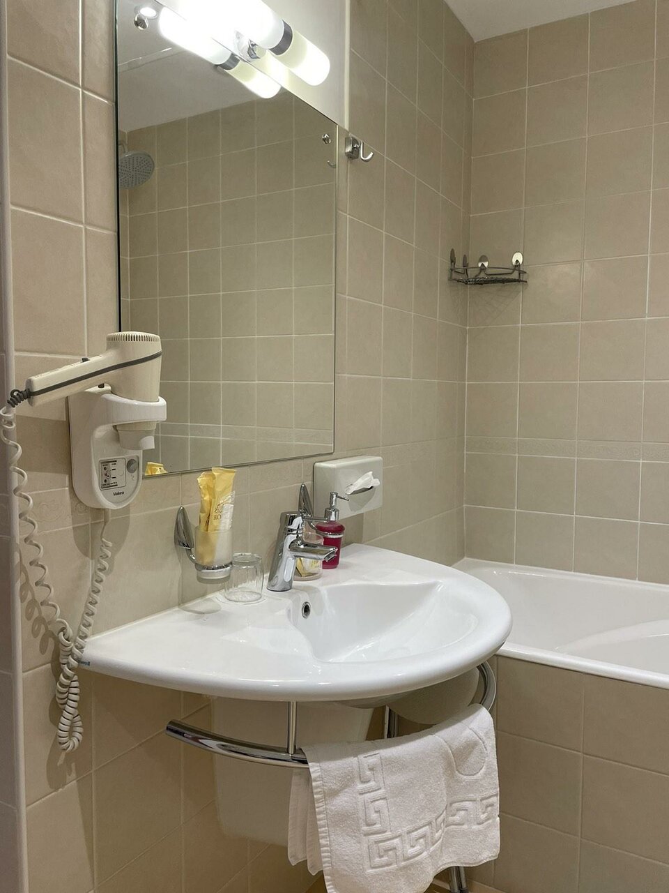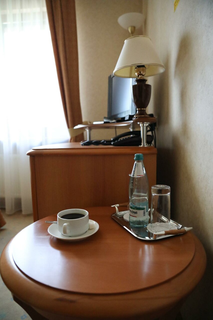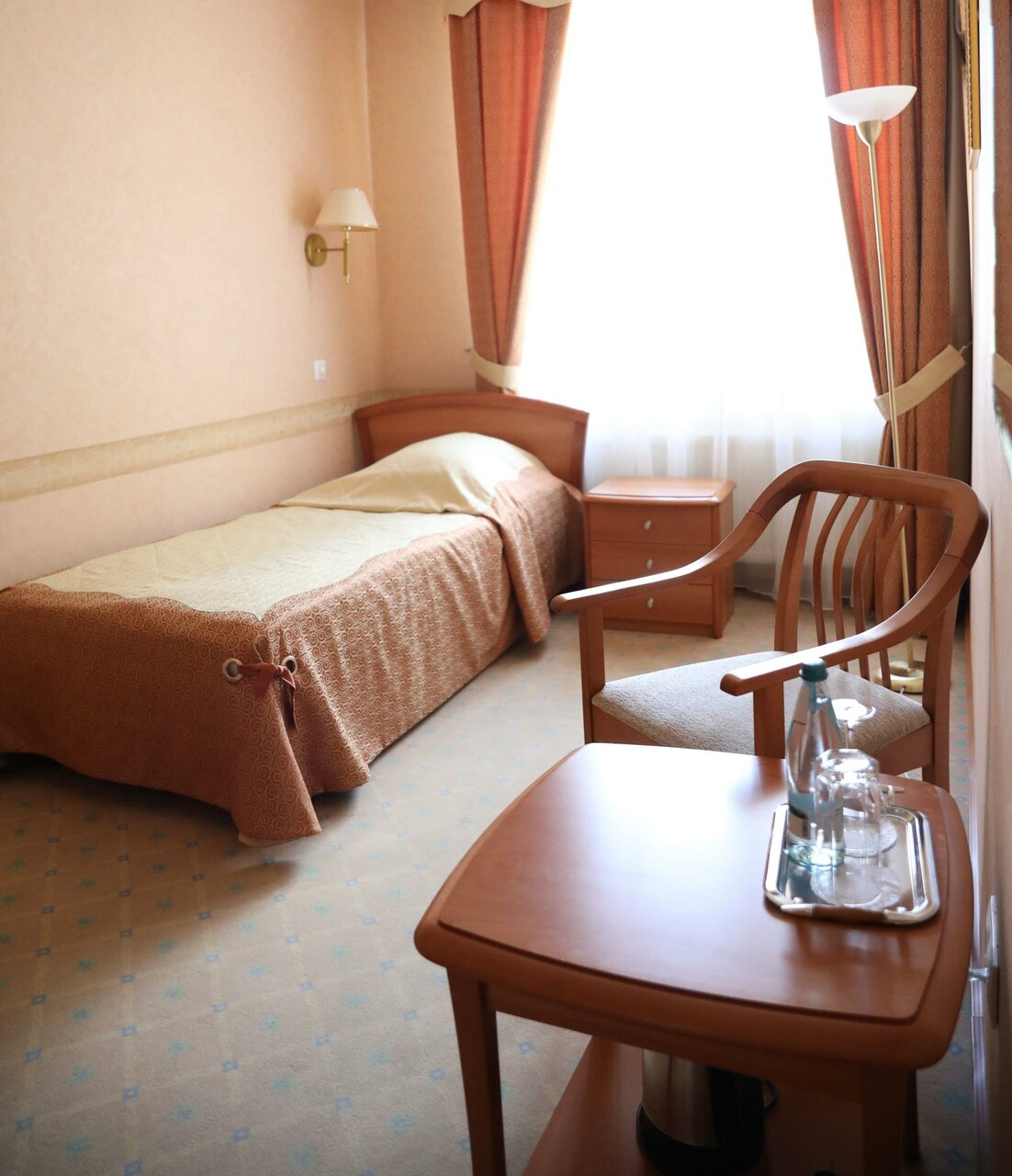Одноместный номер категории «Комфорт». Телевизор, телефон, кондиционер, мини бар, сейф. Санузел: просторной душевой, раковиной, унитазом, феном, махровыми полотенцами, тапочками, гигиеническими принадлежностями.