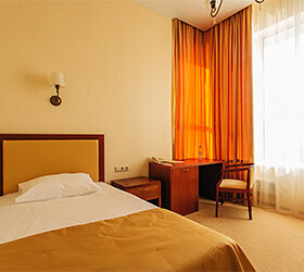 Однокомнатный номер площадью 15-18 кв.м с односпальной кроватью 90х200см. Цена указана с учетом завтрака.