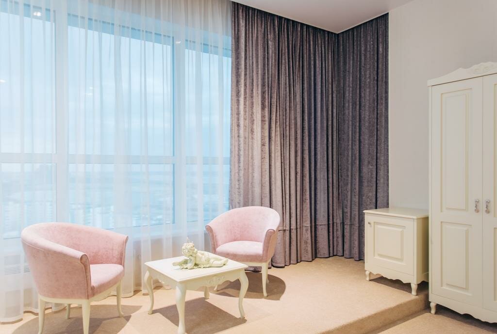 Очень стильный отель! Отличные номера! Основная фишка типо ресторана на 22 этаже… вид на закат был только с 2 столиков на 2 места утром на рассвет тоже. Хорошие виды из номеров 21 и 22 этажа даже на город. Но они и дороже. Отличный завтрак на любой вкус включая сёмгу и нельму! Персонал приветливый гибкий в общении!