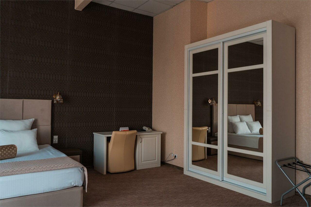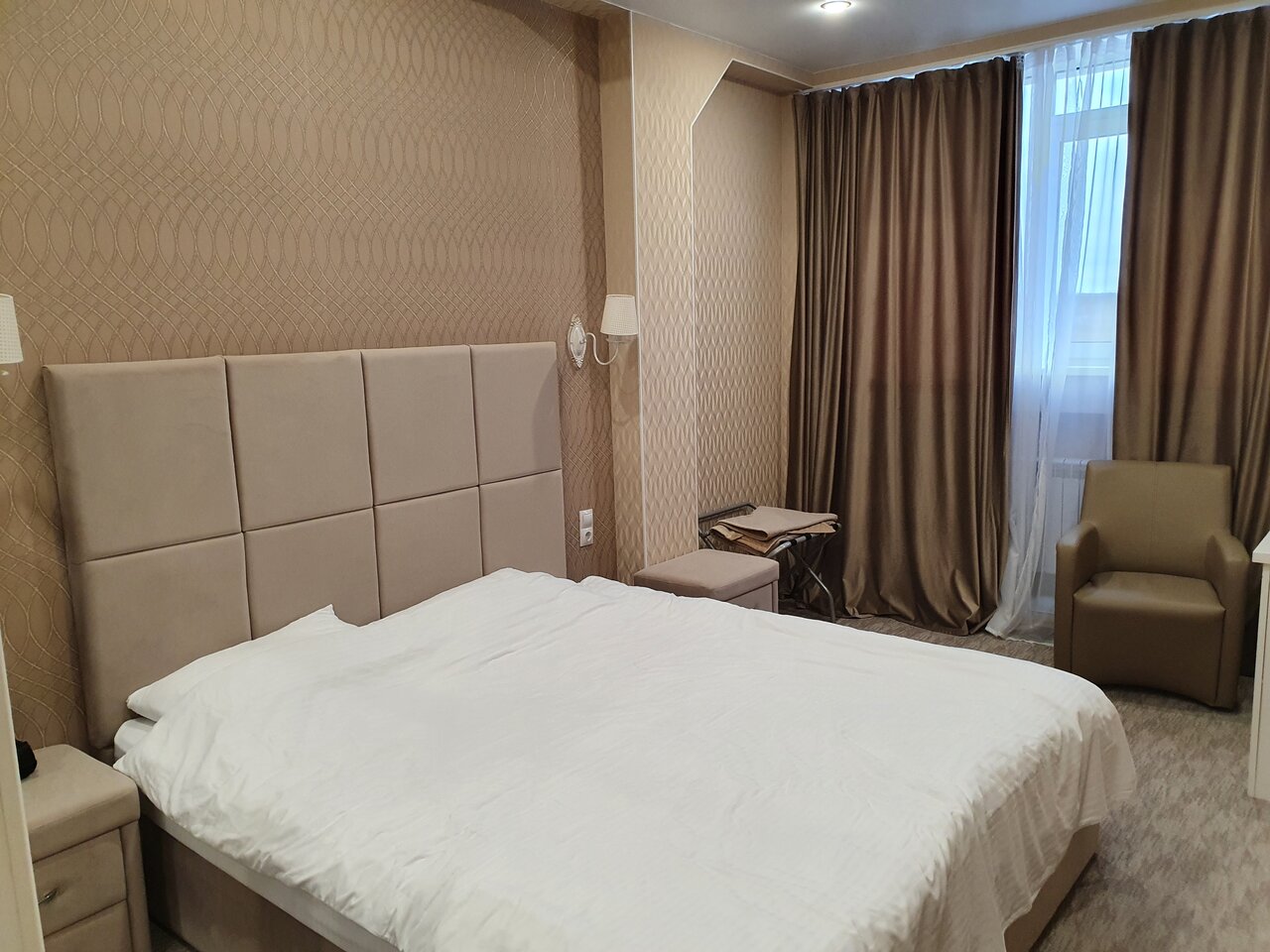 Номер повышенной комфортности площадью 30 кв.м. В номере располагается роскошная двуспальная кровать, рабочая зона, зона отдыха, и ванная комната, оборудованная всем необходимым.