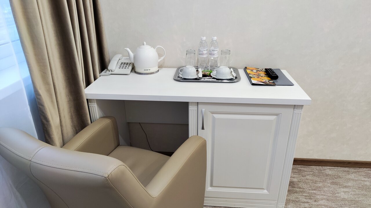 Просторный номер, площадью 25 кв. м, оснащен двуспальной кроватью, чайной и рабочей зоной, креслом. Возможно одноместное размещение , а также двухместное размещение с раздельными кроватями.