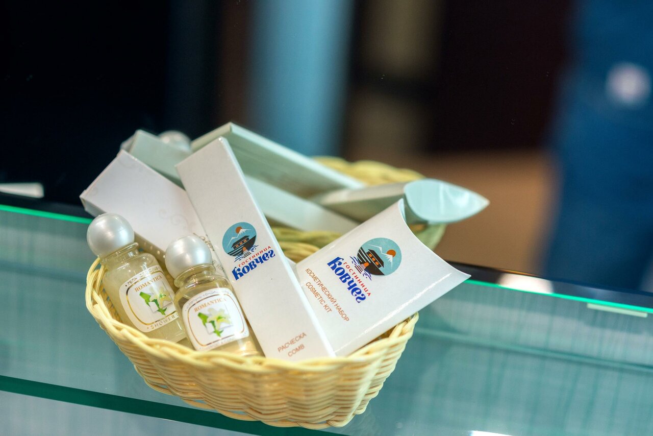 - Чистое белье и полный комплект принадлежностей (полотенца, халат, тапочки, зубной набор, шампуни, расческа)