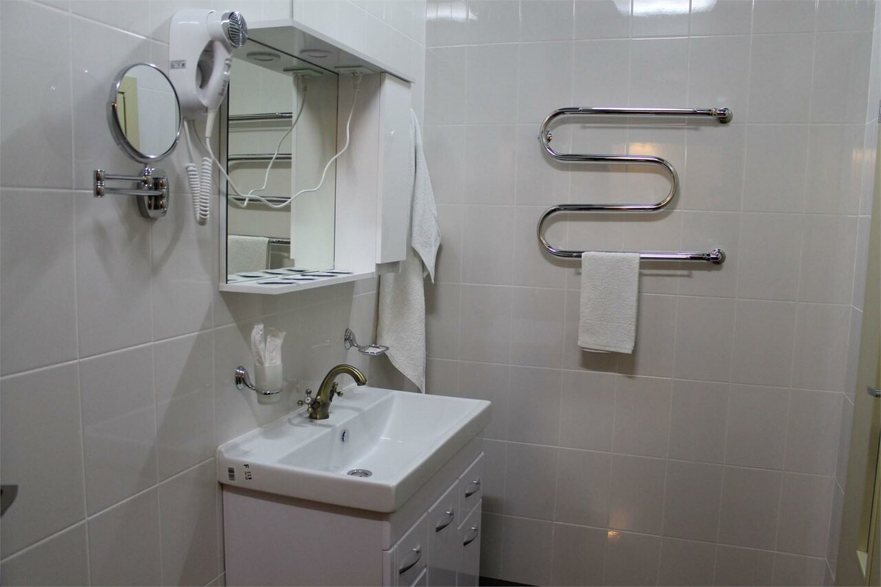 Всё отлично но… Мне не хватило: 1) чайника в номере 2) обувного рожка и средств по уходу за обувью И в шкафу для белья тоже нужно вытирать пыль.