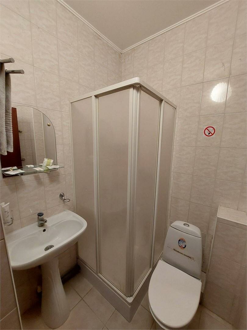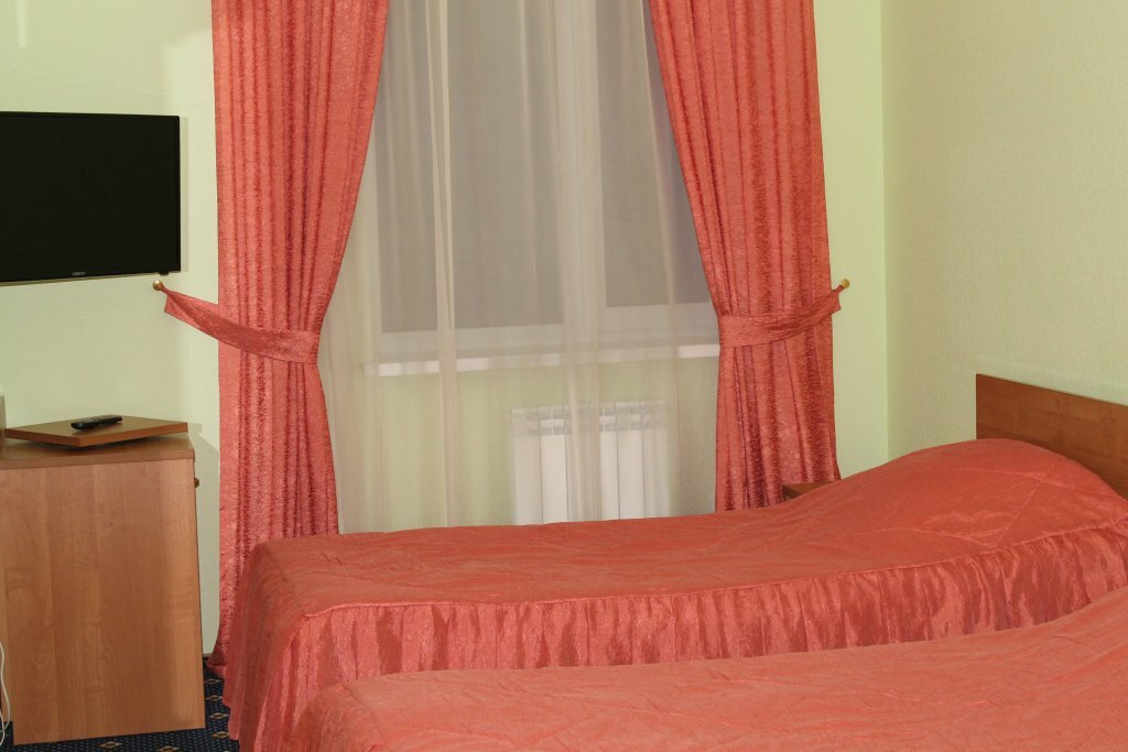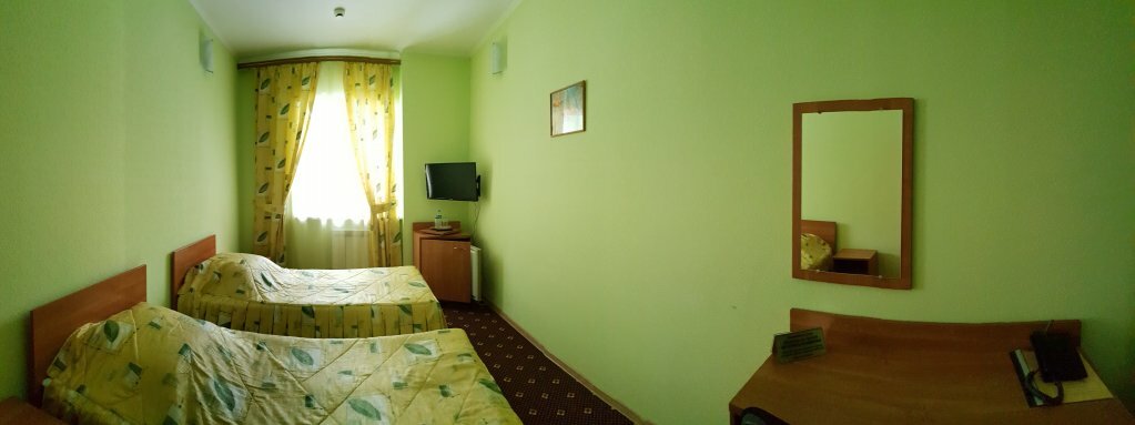 В номере с собственным санузлом, туалет, раковина, душевая кабина, халат, фен, набор полотенец, шампунь, гель для душа, мыло, зубной набор. Wi-Fi, телефон, ЖК-телевизор, стол, стулья, шкаф, прикроватные тумбочки, зеркало, две односпальных кровати