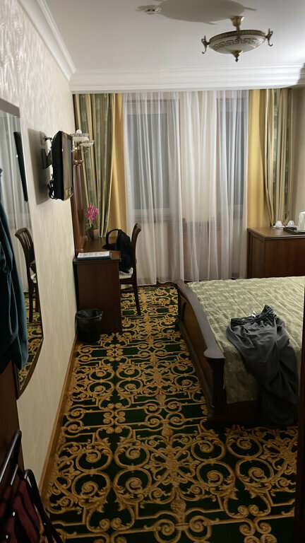 Непонятная гостиница. Номера просторные, в декабре было прохладно, вид из окна на дворы 5-этажек, стены тонкие у номеров, очень высокая слышимость. Два лифта, внутри перемещение на одном, на рецепцию — на втором лифте. Ресторан — еда неплохая, рыбы северной нет на завтраке в нарезке. Странный антураж в ресторане: столы застелены клеенкой, как в столовой, мебель из пластика. Есть тренажерный зал, эллипс — сломан и морально устарел, целая — дорожка. Расположен отель в центре. Поселились по причине отсутствия номеров в Сургут — Сити.