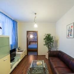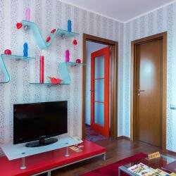 Номер Комфорт однокомнатный с мини кухней и допместом. В номере: двухспальная кровать или две односпальные кровати, раскладной диван, мини кухня, все необходимое для приготовления и приема пищи, Телевизор, холодильник, кондиционер, эл. чайник, wi-...