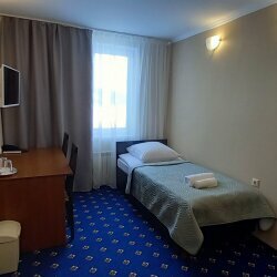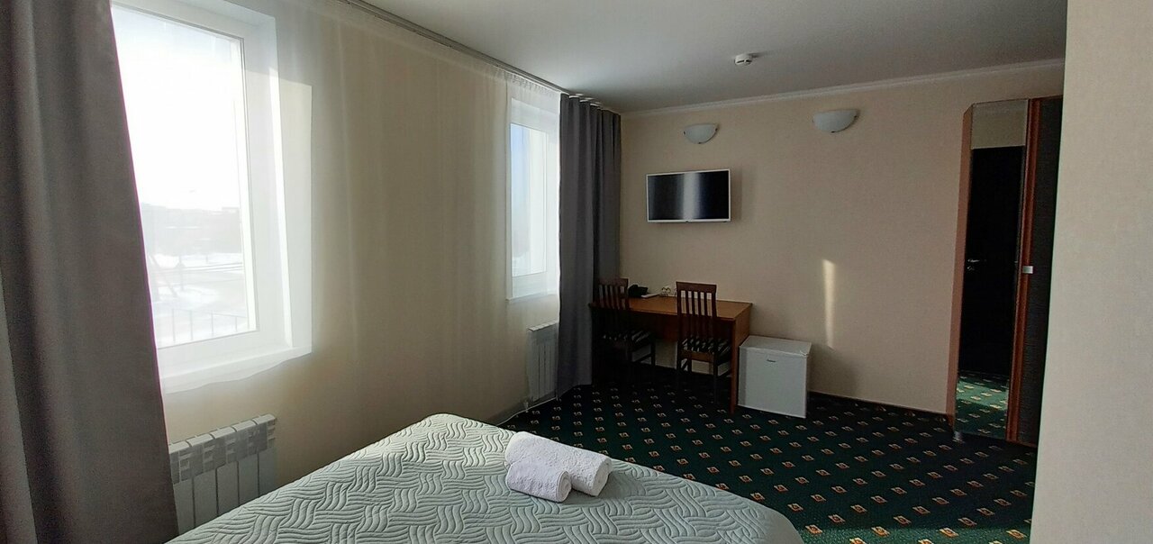 Хорошая дерогая гостиница. Открылись недавно. Все новое. Номера большие. На удивление очень хорошие матрасы и постельное. Спалось на 5+. Не в кажой пятерке такое встретишь. Внизу что то типа кафе. Завтраки, ужины. Чай и кофе без ограничений. Единственное это расположение в промзоне, но если не гулять приехал, то без разницы. В подвале есть сауна. В целом для рабочих поездок самое то. Был два раза. Сначала двухместный номер, потом одноместный.