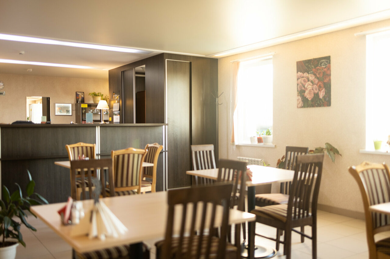Хорошая и недорогая гостиница. Есть бесплатная парковка, вкусные завтраки, обеды и ужины, в комнате есть своя душевая и туалет. Для любителей погреться есть сауна. Кафе для любителей пива и покрепче, цены разумные. Я останавливался так как все близко. Мне понравилось. Утром встал позавтракал, вечером приехал, поужинал, все удобства.