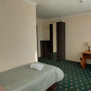 В номере с собственным санузлом, туалет, раковина, душевая кабина, халат, фен, набор полотенец, шампунь, гель для душа, мыло, зубной набор. Wi-Fi, телефон, ЖК-телевизор, стол, стул, шкаф, прикроватная тумбочка, зеркало, полуторная кровать