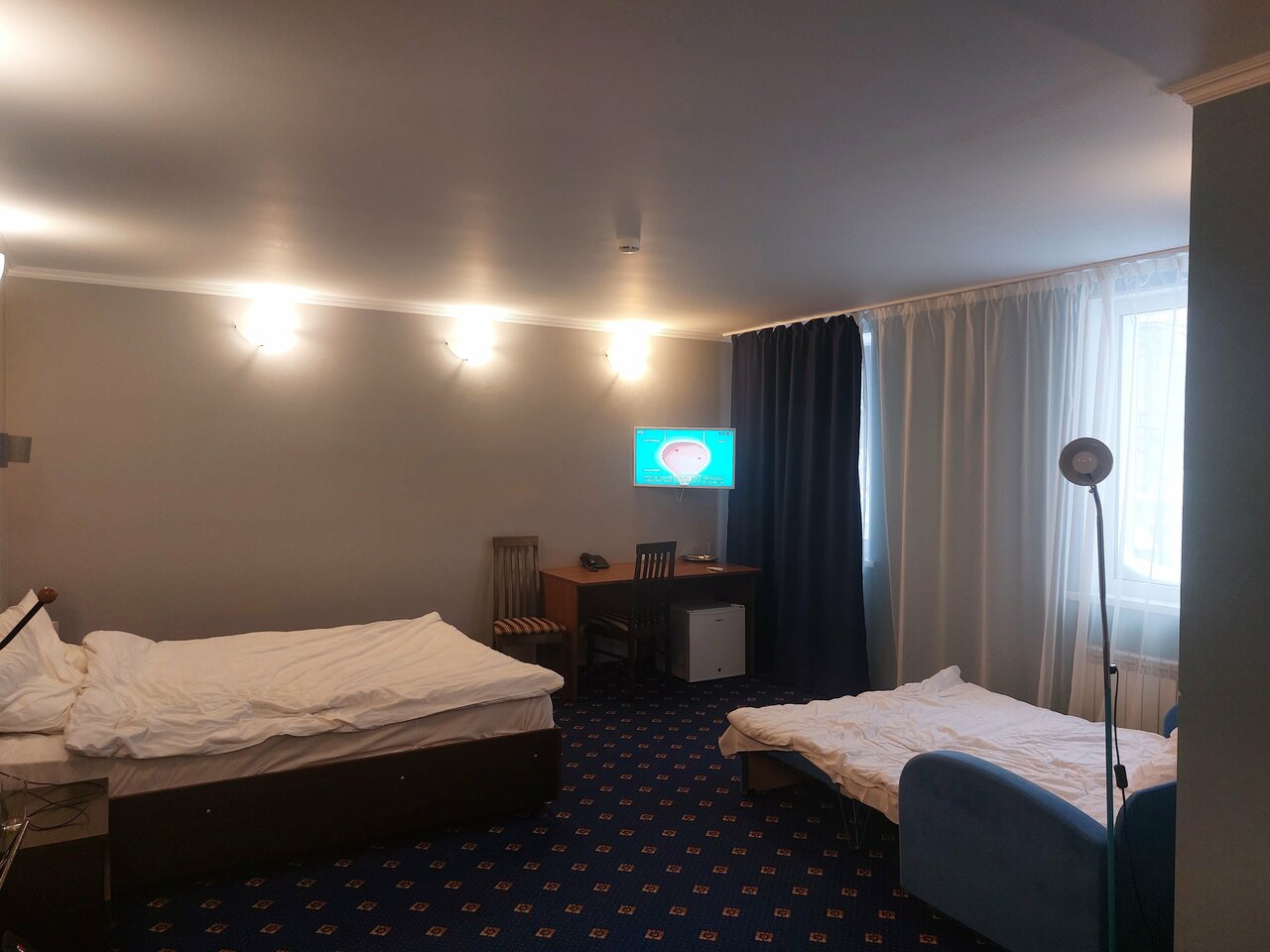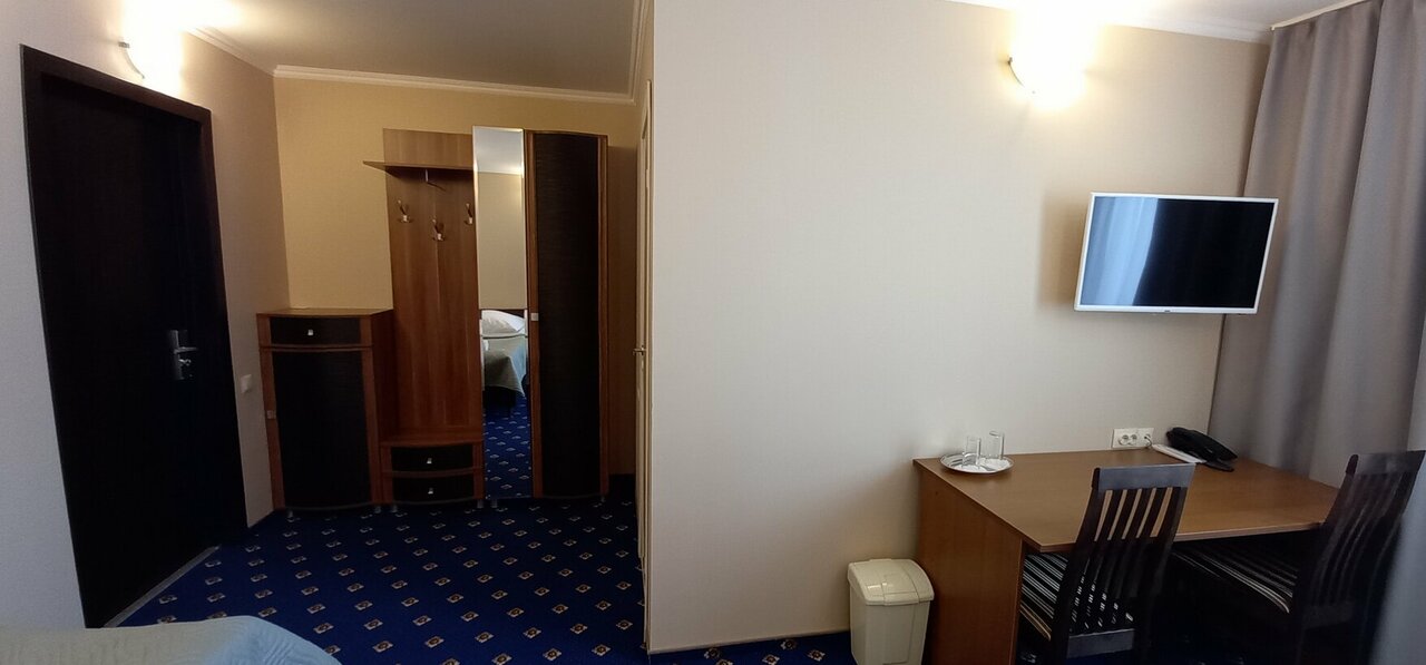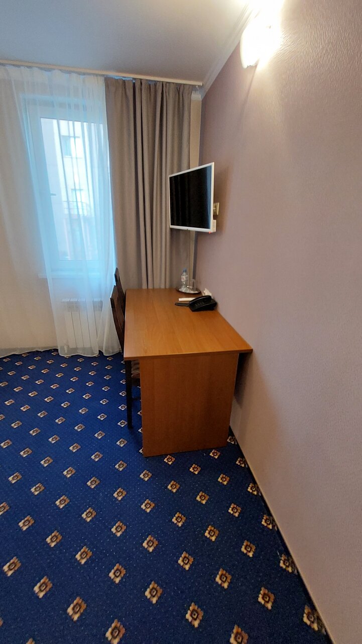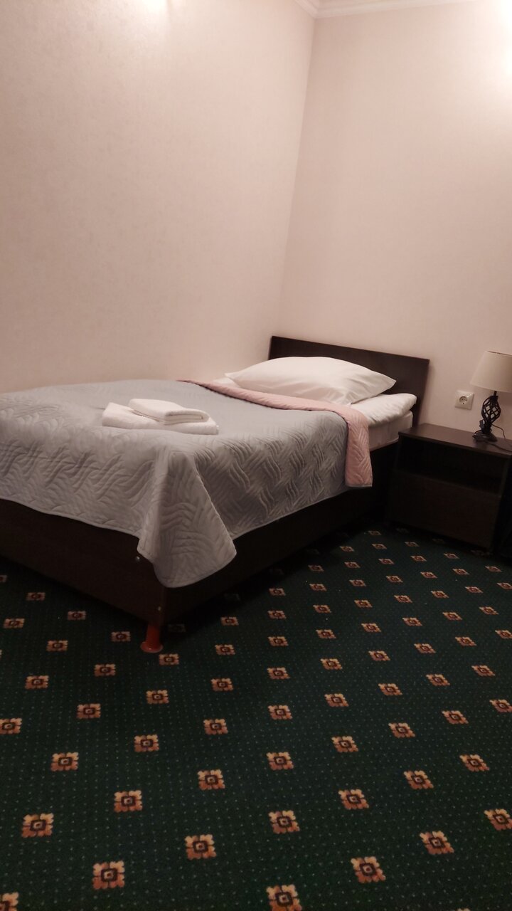 Все хорошо, номер чистый в целом. Водичка есть, в холле всегда можно попить чай, кофе. Я жила в угловом номере и было немного прохладно, а вот в санузле — холодно. На полу не было ковриков и было не приятно становится на холодный каменный пол. Номер был с обедом. Он был сытный и вкусный. Жаль не было десерта.