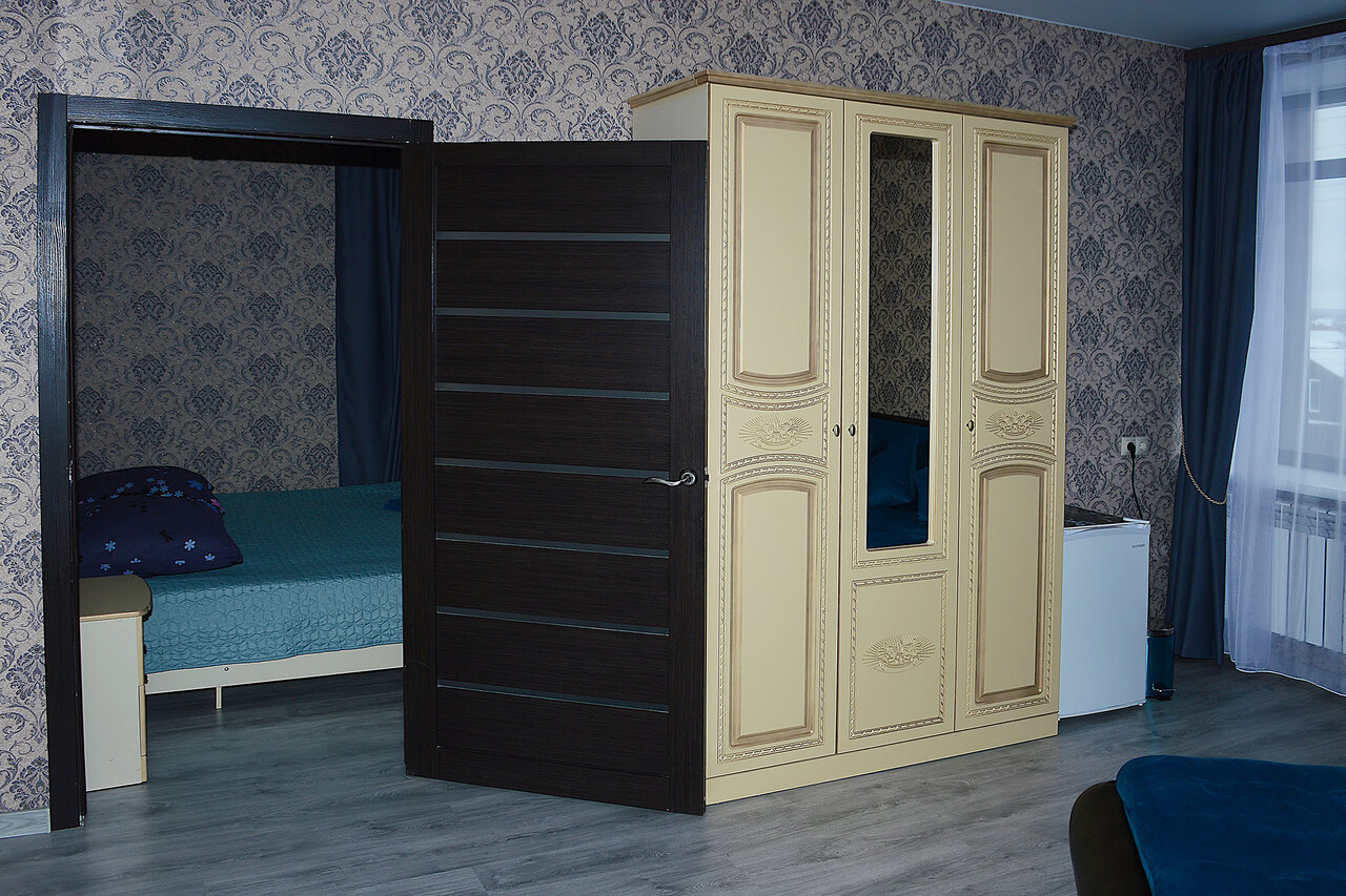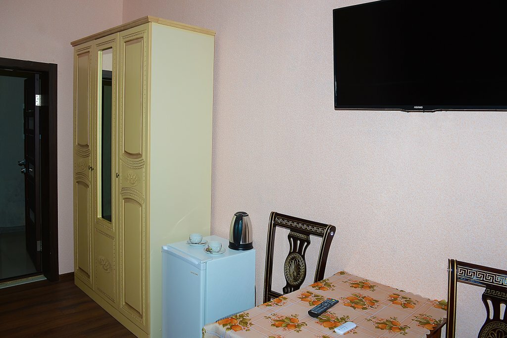 Подуставшая уже обстановка , в хамаме темно , микроволновка и холодильник стоят в общем помещении