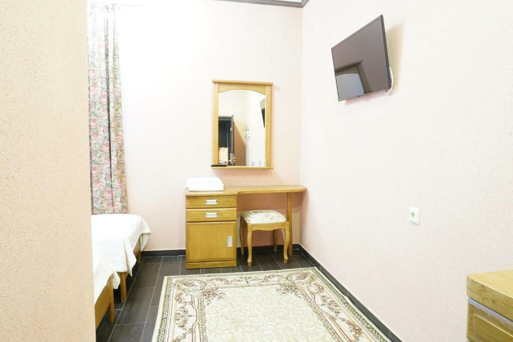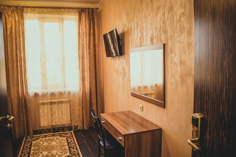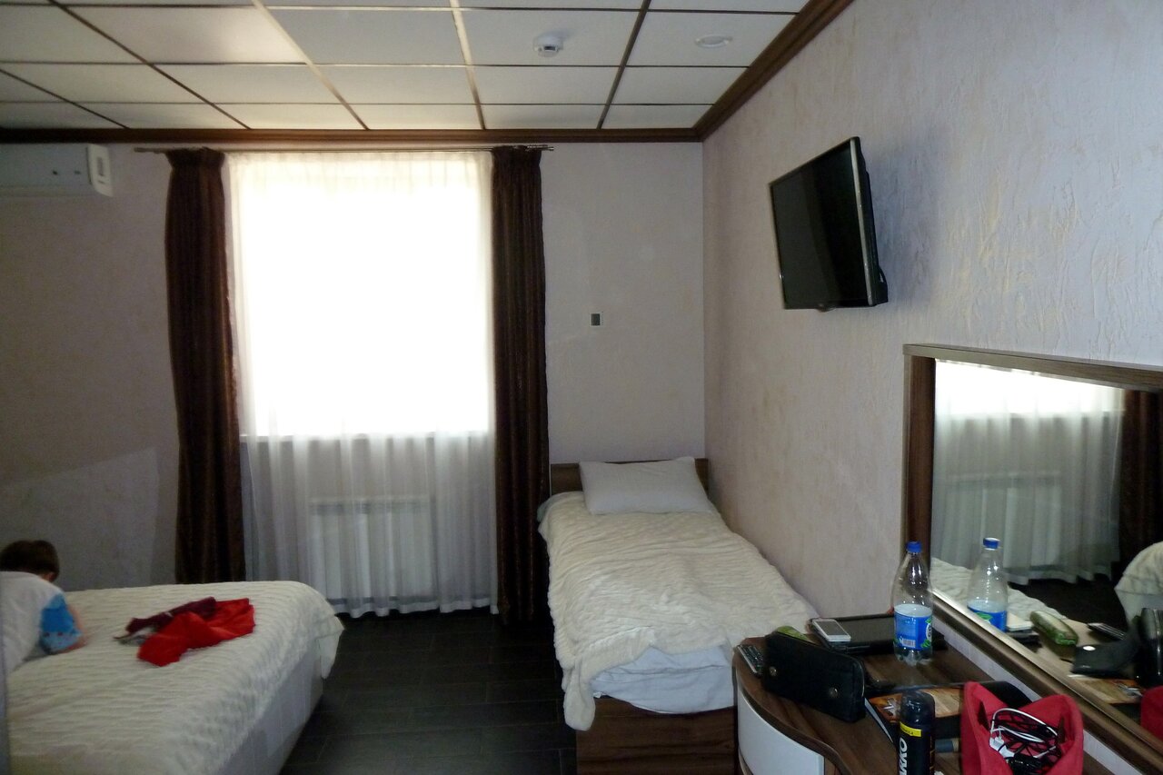 Останавливались по пути из Тольятти в Крым и на обратном пути. Номера небольшие, но уютные. Холодильника в номере нет, но можно воспользоваться холодильником в кухне-столовой рядом с ресепшн. Здесь же круглосуточно и бесплатно можно попить чай ( что очень удобно, например, при раннем выезде). В стоимость также входит бассейн ( крытый) с бодрящей водичкой и выходом во внутренний красивый двор. Рядом кафе — дёшево и вкусно! Нам всё понравилось