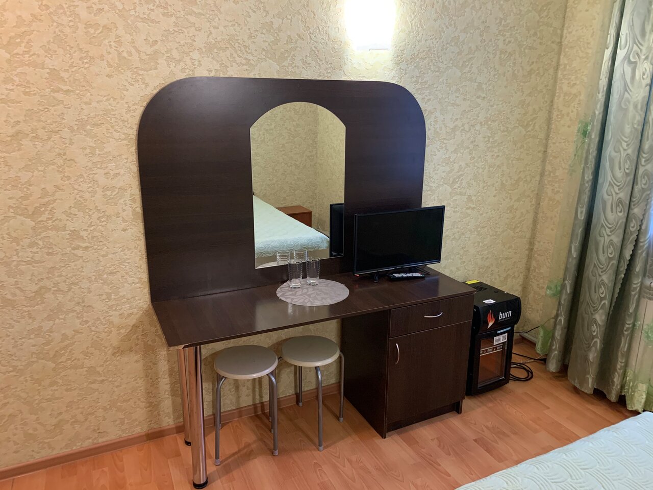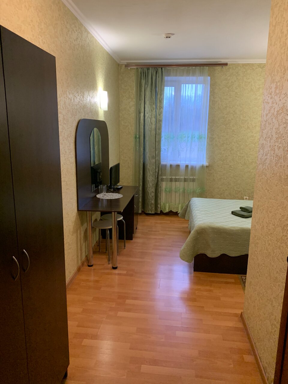 Гостиница чистая, уютная, есть несколько вариантов номеров. В номере есть телевизор, ванная комната оборудована душевой кабиной, водонагревателем, раковиной и унитазом. Не смотря на отсутствие кондиционера в номере было прохладно (на улице было за 30 градусов). Администраторы всегда помогут при решении любых проблем и вопросов. Можно заказать завтрак и ланч, стоимость не превышает 200 рублей. При гостинице есть кухня, где можно самостоятельно приготовить еду. Также рядом есть кафе, готовят вкусно (обед из первого, второго, салата и напитка обошёлся в 520 рублей с учётом чаевых официанта). Хочется добавить свой отзыв. В этом году обновилось меню в кафе при гостинице. Свинина ‘Валенсия’