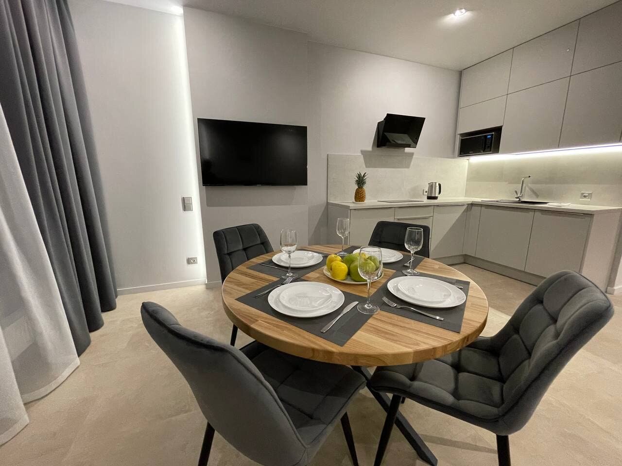 Прекрасные апартаменты. Чисто, уютно. Есть все необходимое: посуда, техника, все для поддержания чистоты. Полотенца, гели, шампуни, зубные щетки и т.д. В этом же здании магазины с большим ассортиментом, алкоголь маркет (кому важно). Очень понравилась возможность посетить SPA отеля Кристалл с 25 %скидкой. Спасибо всем принимающим.