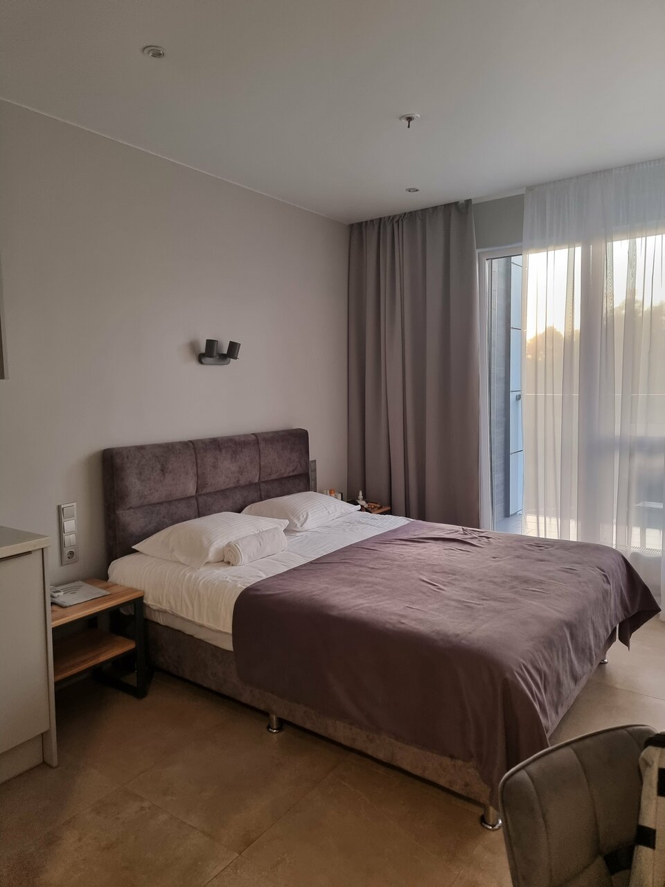 Все чисто, современно и удобно расположен. Был номер с терассой. Не далеко выход к морю 5-7 минут. В номере стиральная машина, посудомоечная машина и т.д.
