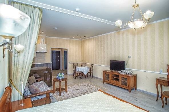 Отличные апартаменты. Отдыхали семьей, очень понравилось. Большая комната, уютно, все чисто. Размещение комфортное. Чувствуется клиентоориентированность администратора Светланы: для нашего ребенка поставили детскую кроватку с новым постельным бельём, стульчиком для кормления и подогревателем бутылочек.