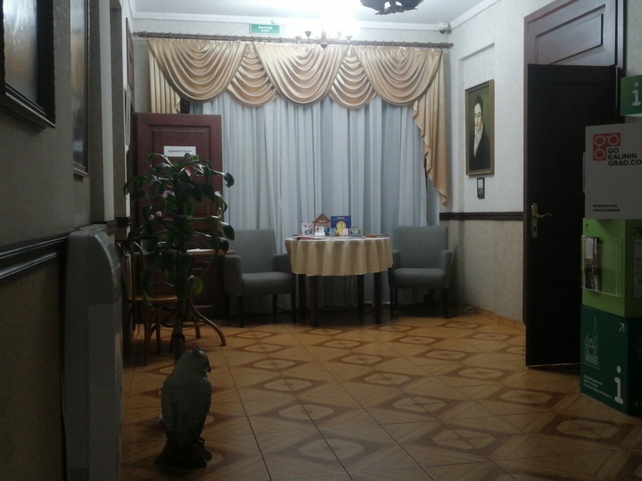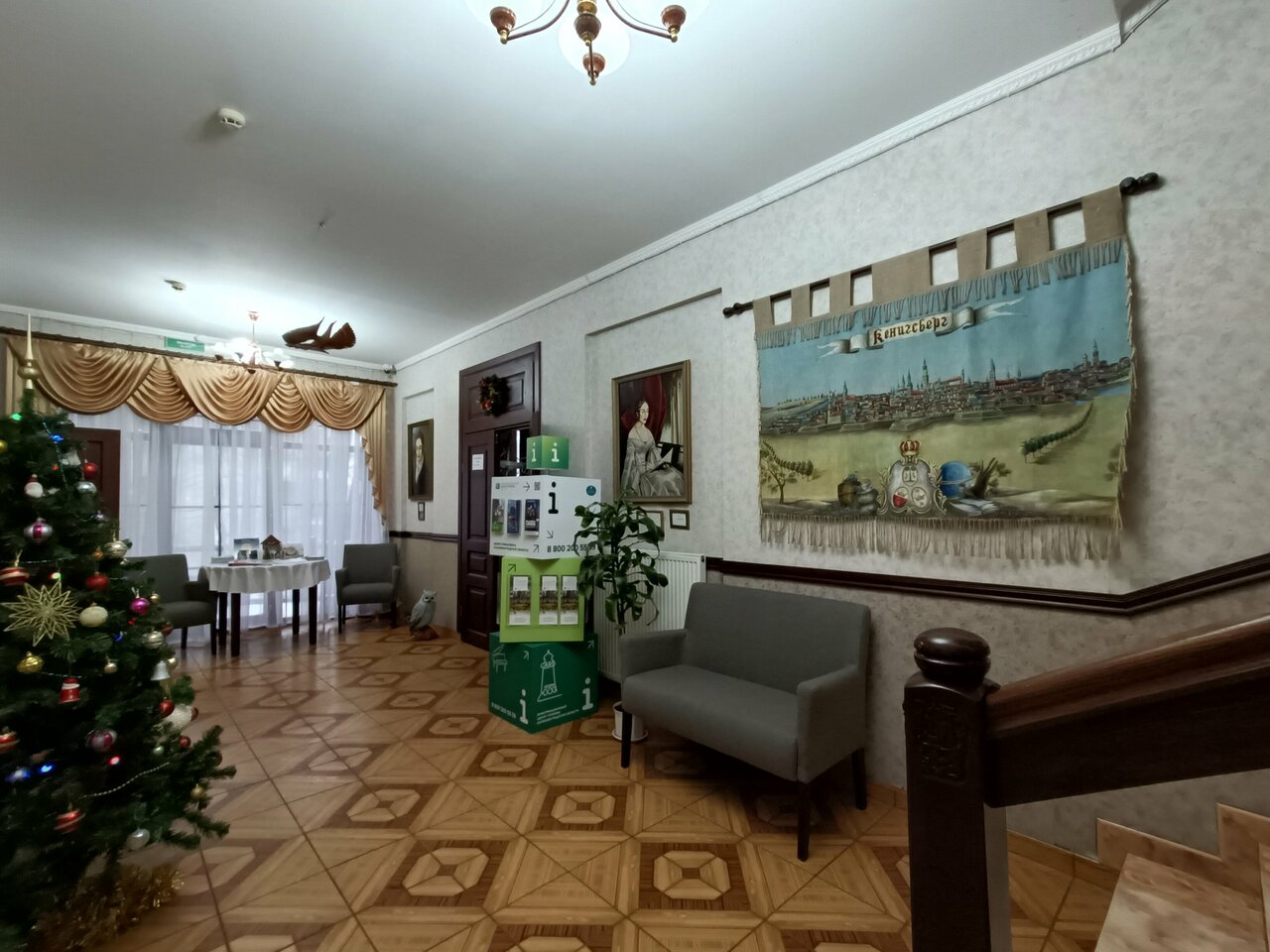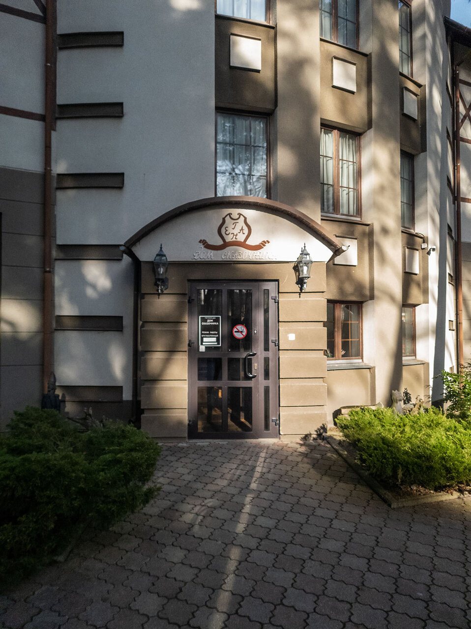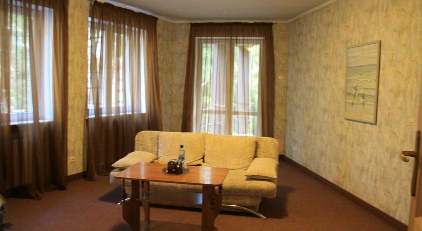 Очень приятный отель ! Два отдельных здания. Расположен удобно: до центра 8..10 минут спокойного хода,до моря чуть дольше. Кругом деревья,зелень,спокойно,дорог не слышно,шумных кафе,баров нет рядом. Номер достаточно просторный и для 4-х человек места полно. Номер на 3 этаже,две спальни и гостинная. Лифта нет. Небольшая территория около отеля очень необычная,много скульптур ,макет старого Кенингсберга,лавочки,цветы. Красиво.Воздух,природа,птицы поют. Персонал вежливый,отзывчивый. Завтраки вкусные (в стоимость номера не входят),есть комплексные обеды .