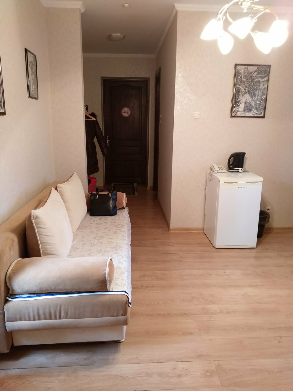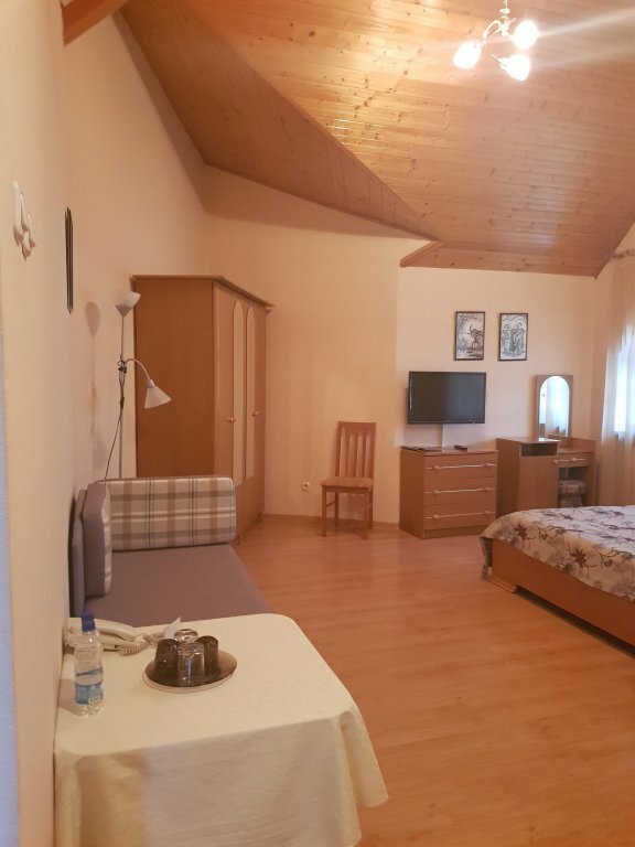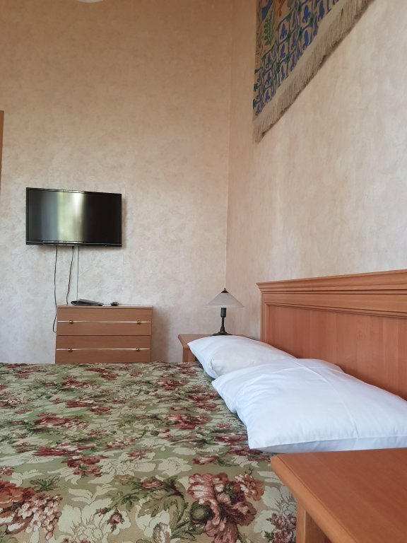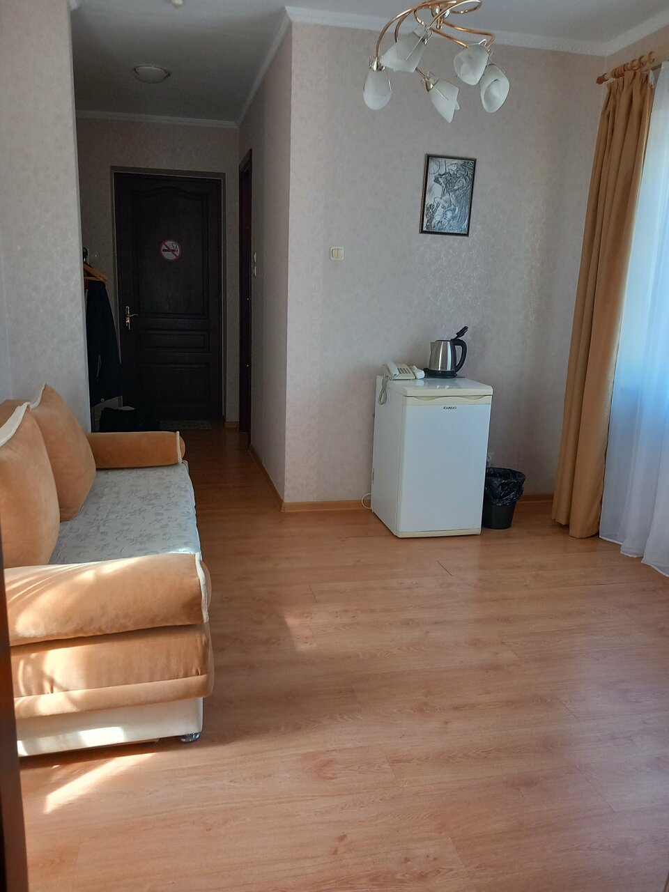 Комната большая, чисто, есть всё необходимое и ещё диван. Су и ванная с раковиной в номере. Холодильник, фен, ТВ, стол, стулья. Было тихо. Обслуживание хорошее. Администраторы помогают в любом вопросе.