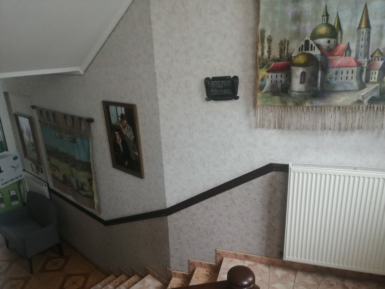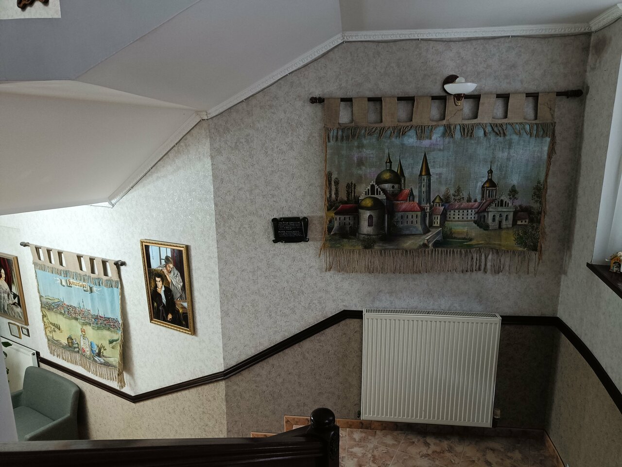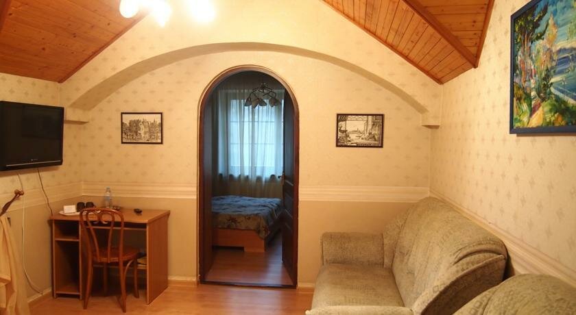 Расположен в окружении новых, но живописных особняков, отдельного отзыва заслуживают разнообразные и многочисленные скульптурные миниатюры. Вкусный завтрак в каминном зале под классическую музыку. Удобный матрац средней жёсткости, в номере есть холодильник, чайник, кружки и фен. Все пропитано любовью к своему делу и к городу, начиная с ключей и дверных скульптурных табличек, заканчивая парковой зоной, вековые сосны, пение соловья. Удобно добираться, как на общественном транспорте, так и на такси, несколько подъездных дорог и парковка. Все достопримечательности в шаговой доступности. В номере есть пледы, которые очень кстати брать с собой на вечерний моцион по променаду. Рекомендую, место замечательное.