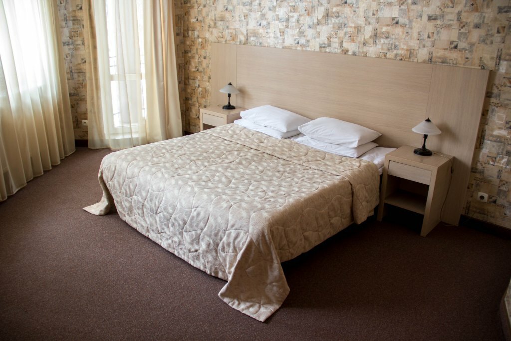 Однокомнатный номер с двуспальной или двумя раздельными кроватями, дополнительным спальным местом, собственной ванной комнатой и другими бытовыми удобствами. Стоимость проживания двоих человек в сутки - 4400р. Цена на проживание до 30 апреля