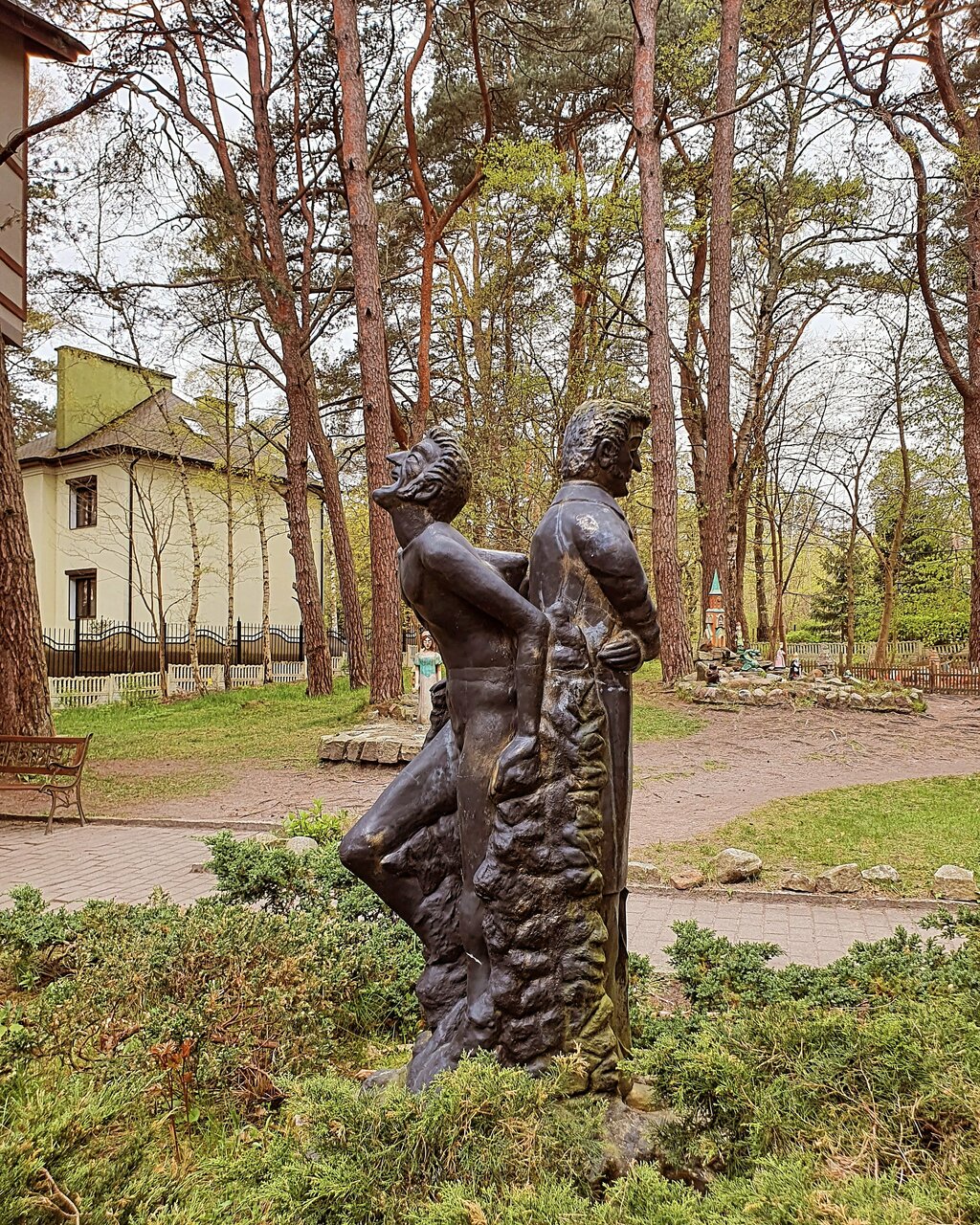 - Красивая территория со скульптурами.