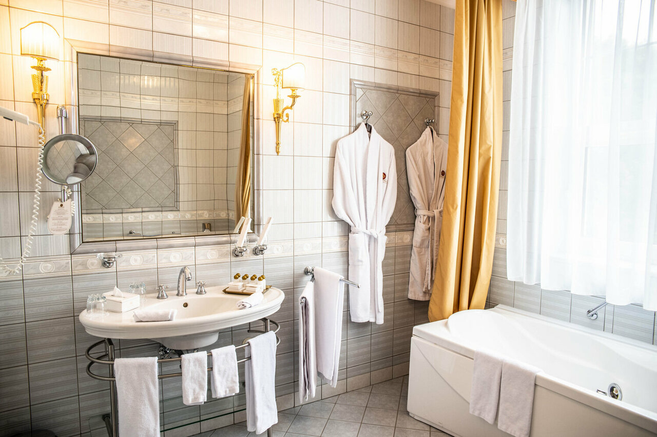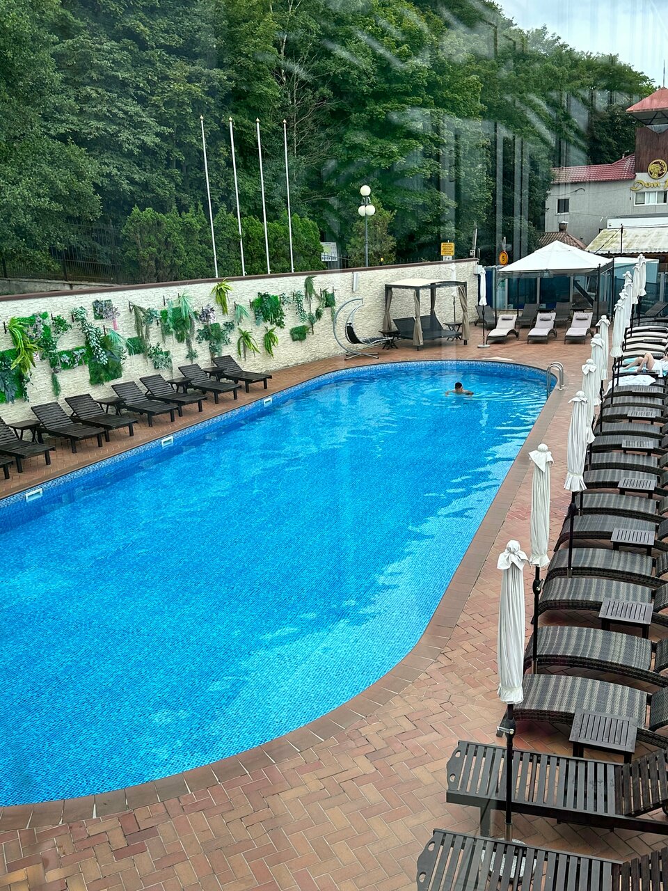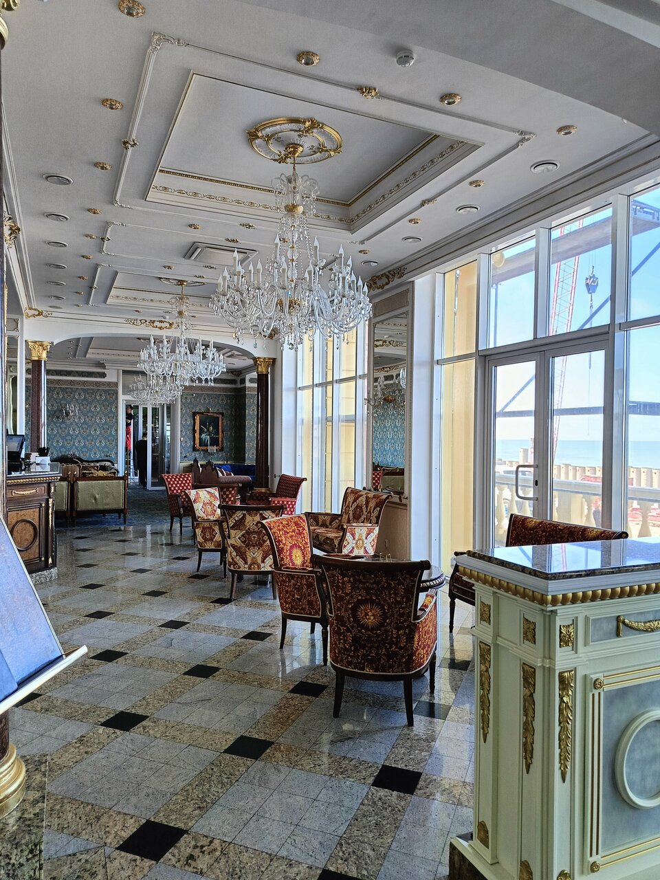 Останавливались в люксе с видом на море с 15 по 16 января. Завтраки не входили в проживание, 1200 с человека показалось дороговато, и мы завтракали по отдельному меню в лобби. Альтернативной была пиццерия в отеле, но в наши даты она работала только с 12:00. Зато бар и десерты в отеле были круглосуточными, что редкость для Светлогорска. После 10:00 тут всё закрывается. Хорошая сауна и бассейн с комфортной температурой воды. Посещение SPA нужно бронировать заранее, тогда вы будете одни. Мы брали 1 час времени, и нам этого вполне хватило. Также порадовал комплимент от отеля — бутылка игристого и фрукты. Интерьер отеля — роскошь на грани разорения, но ремонт не помешал бы. Самый главный плюс — это месторасположение, так близко к морю мы не жили ещё никогда, и, конечно, персонал. Спасибо барменам и сотрудникам ресепшн за незабываемый отдых.