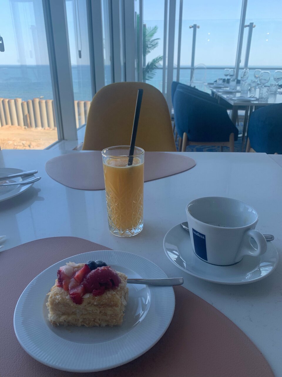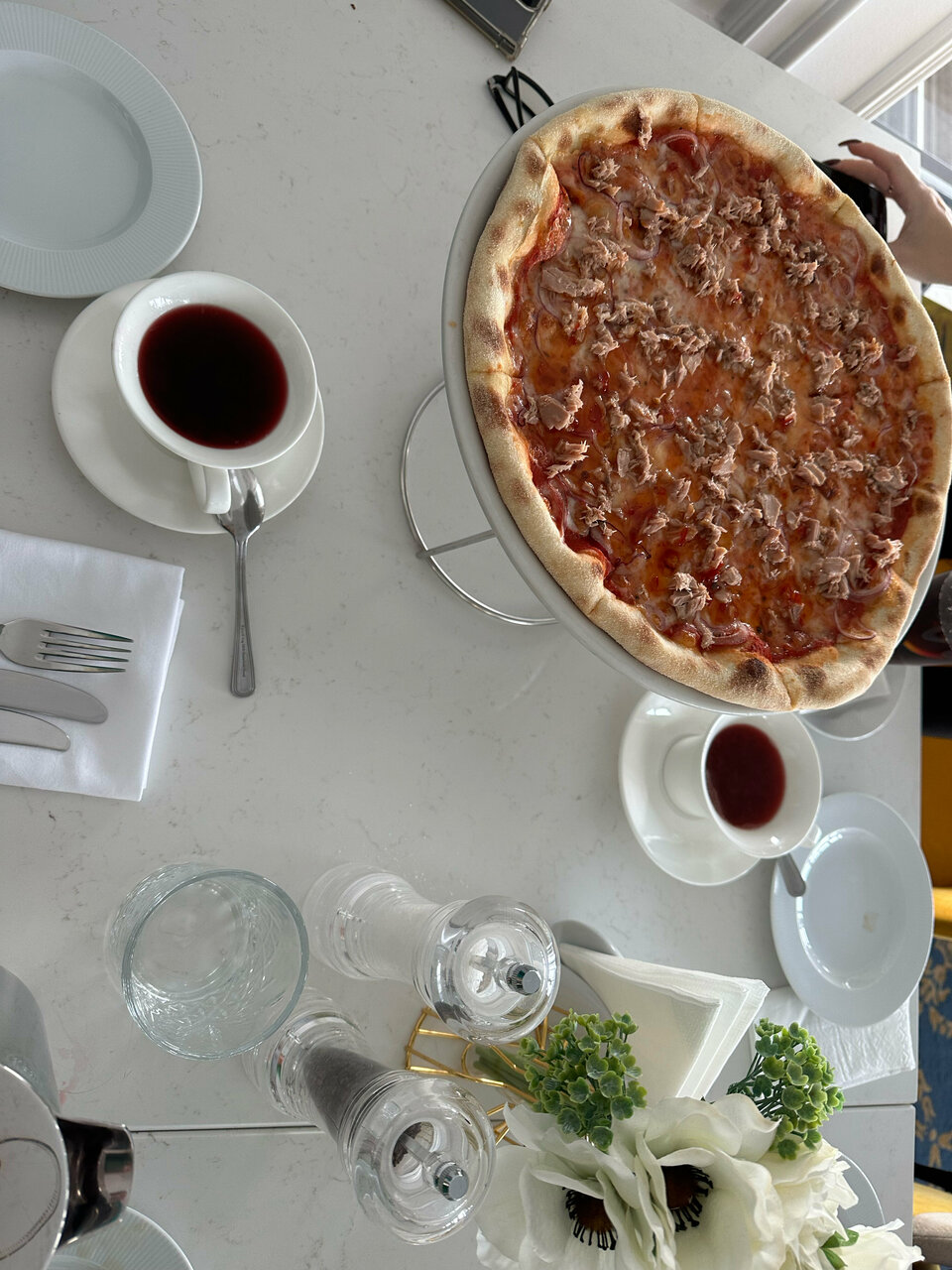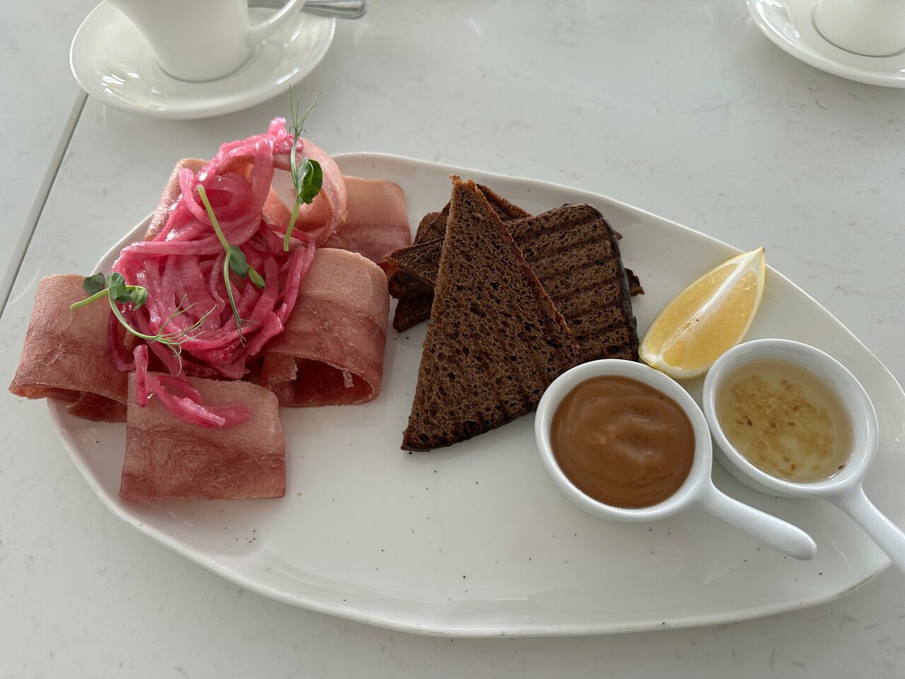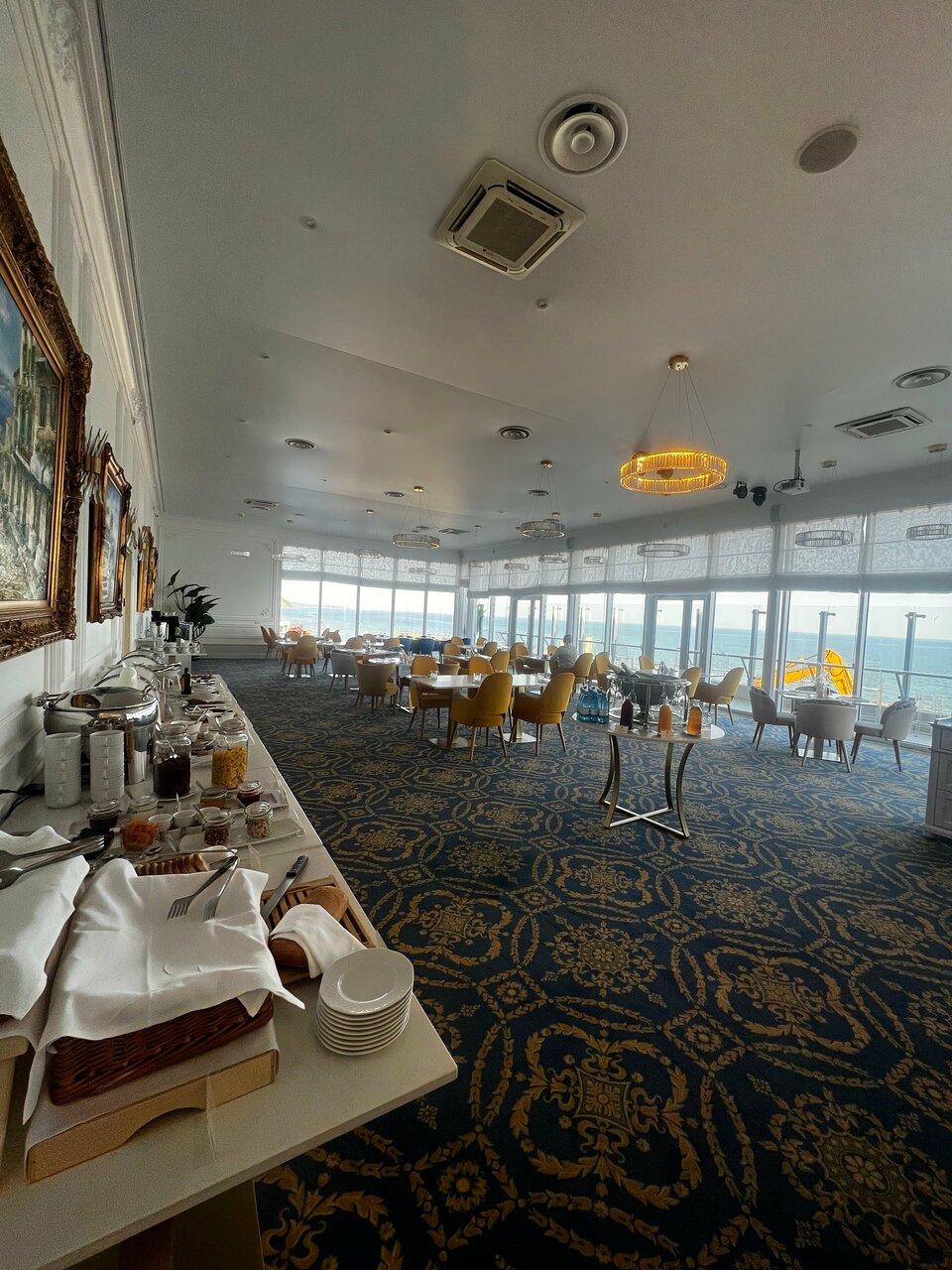Случайно зашли в ресторан отеля (в пиццерии этажом ниже не было мест, о чем совсем не пожалели). Классический интерьер, тихая ненавязчивая музыка, панорамный вид на набережную и море. Цены не сильно выше, чем в других кафе на променаде, но при этом невероятно вкусно, безупречное обслуживание. Потрясающая строганина из пеламиды, литовский холодный борщ в необычной подаче (с креветкой) тоже весьма радует.