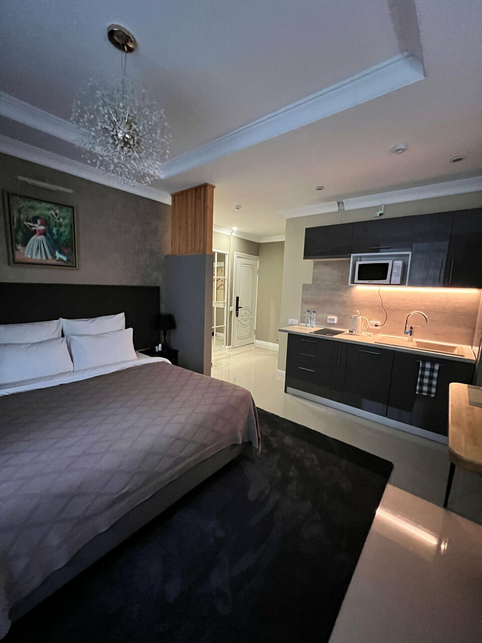 Прекрасный отель. Местоположение отличное. В тихом районе города и близко к центру. До променада 7 минут пешком. Хороший пологий спуск. И в стороне от стройки, которая сейчас там идет. Это огромный плюс. Номера красивые, мебель, аксессуары, все подобрано со вкусом. Очень чисто. Отдельно хочу отметить хозяина отеля Алексея. Потрясающий человек, отзывчивый и радушный. Помогал во всех вопросах. Рекомендую отель на все 100%. Мы отдыхали семьей с маленьким ребенком. Отель заранее предупредил меня о том, что он не рассчитан для отдыха с маленькими детьми. Но мы все равно решили попробовать. Все прошло благополучно, но, в целом, соглашусь, что с маленьким ребенком было немного сложно.
