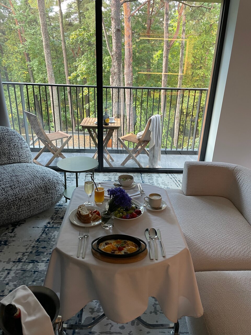 - Тихая и спокойная атмосфера.; Вкусная еда, красивая подача блюд.; Компактный, но уютный СПА.; Современная сантехника и техника (ТВ, электросамокаты).; Приветственные напитки (игристое, соки).