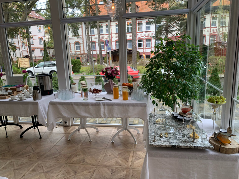 Замечательный отель в самом сердце Светлогорска! Хочется выразить благодарность всему персоналу отеля.. идеально было все от момента заселения и до выезда. Тот самый отель, куда хочется вернуться вновь) Номера очень чистые и просторные с чудесным видом на вековые липы и клены. Косметика из США в ванной комнате. Организованная встреча с Шампанским для взрослых и соком для детей, а также трюфели ручной работы.. сервис отеля на высшем уровне. Отдельно скажу о завтраке в номер… побалуйте себя — это очень вкусно и красиво! Спасибо Мадам Эль за прекраснейшие выходные