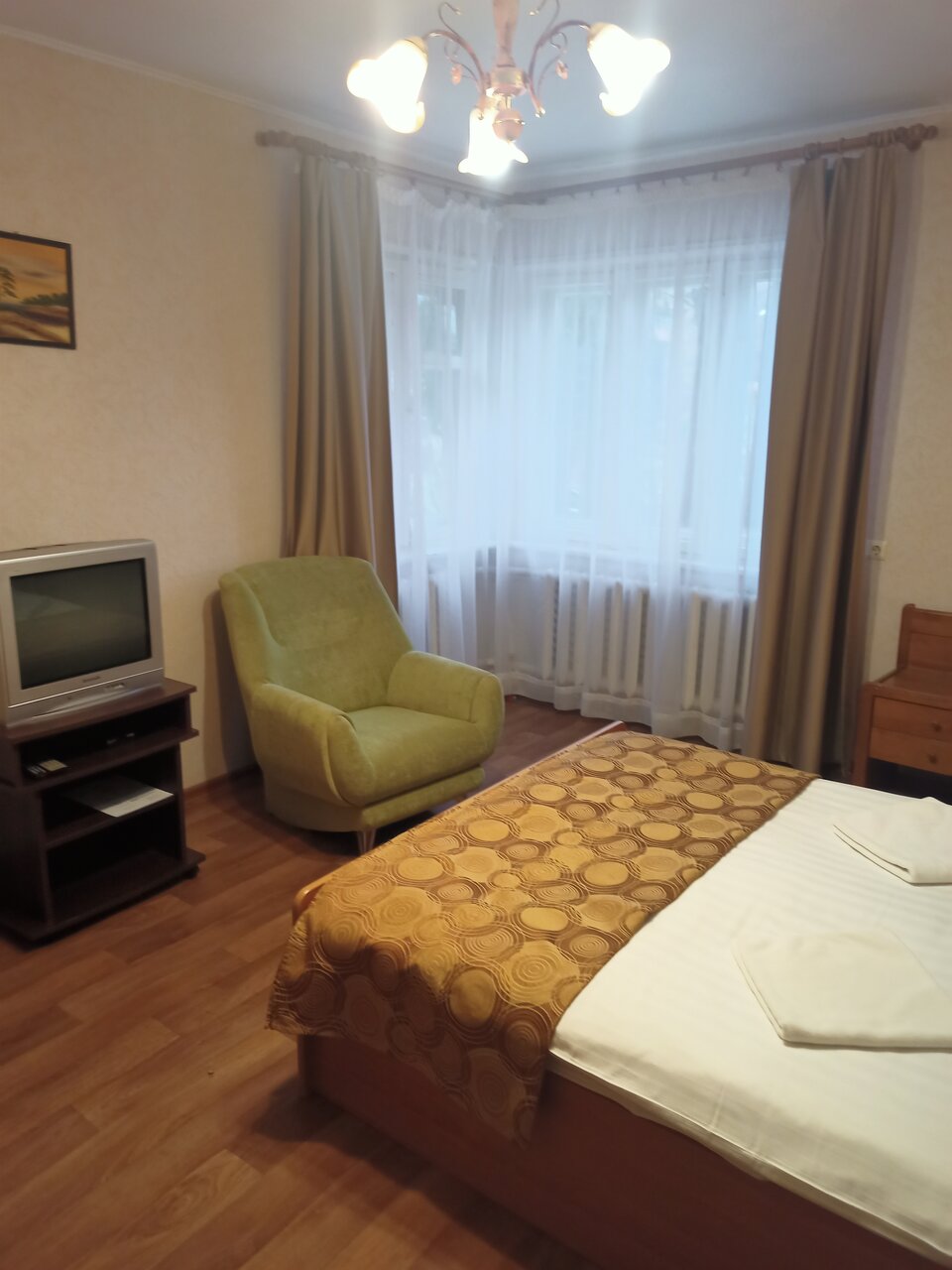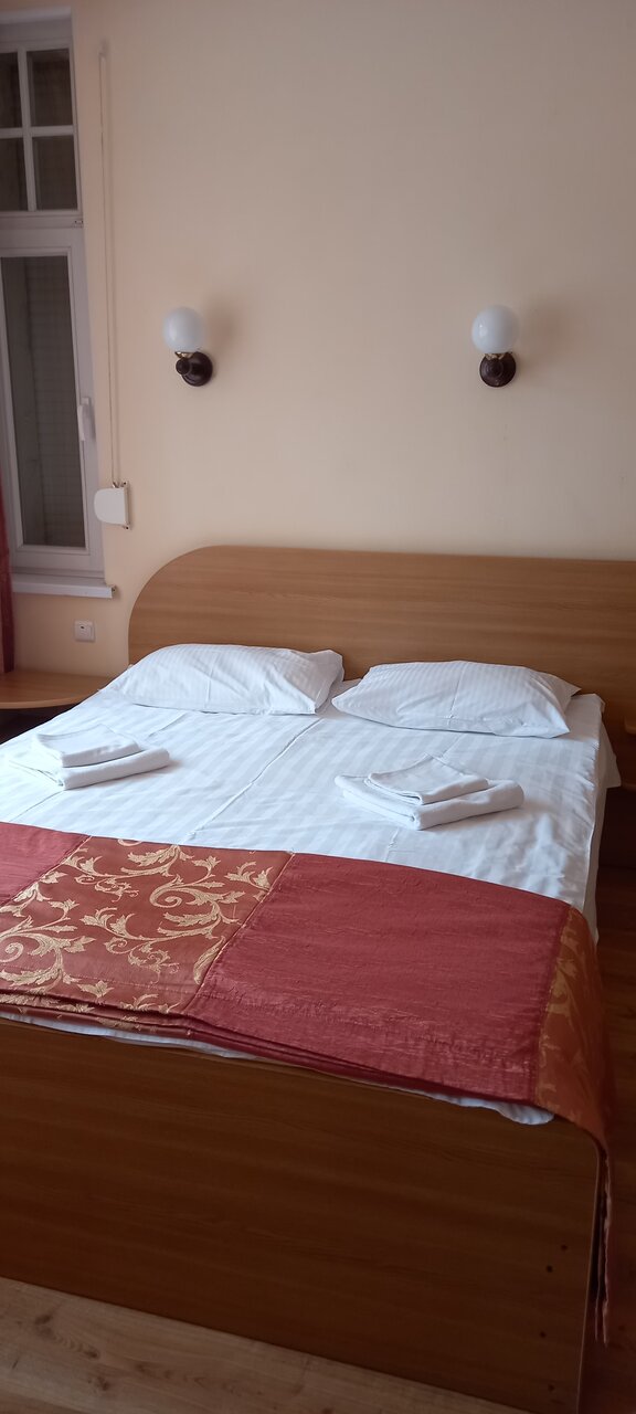 Отдыхала в одноместном номере на втором этаже, расположенном по улице Ленина(у отеля два корпуса, второй расположен в памятнике архитектуры). Удачное расположение-самый центр, рядом с вокзалом. В номере чисто, постельное бельё белоснежное, кровать удобная. Номера со старым ремонтом, но меня это не напрягало,уборка регулярно проводилась. В душ и туалет очередей не было. К персоналу претензий не было