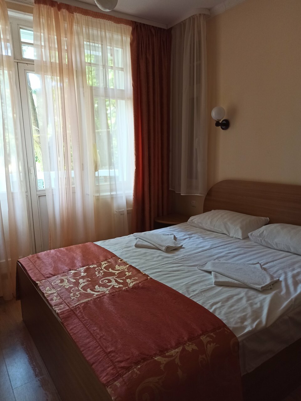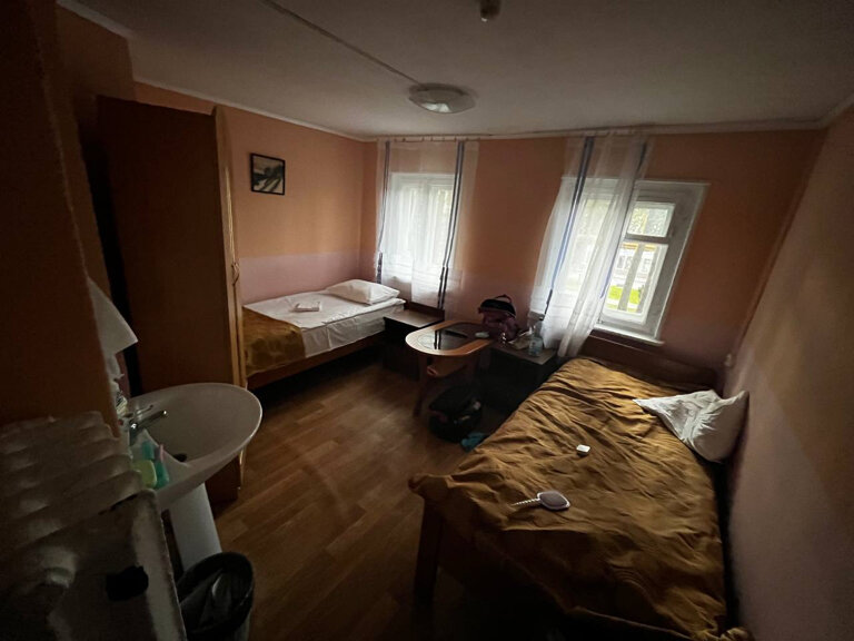 Ну такое :))) совдеп в чистом виде. Бюджетный вариант размещения точно. Более дорогие номера, может и повеселее, но если берете самый дешевый, то должны быть готовы к очень очень древнему номеру по типу ‘кровать-стул-окно’)) с облупившейся краской на окнах, душем не первой свежести на этаже и старенькому линолеуму на полу. К чести администраторов надо заметить, что до заселения тебе обязательно покажут номер и будут вполне вежливы и позитивны.