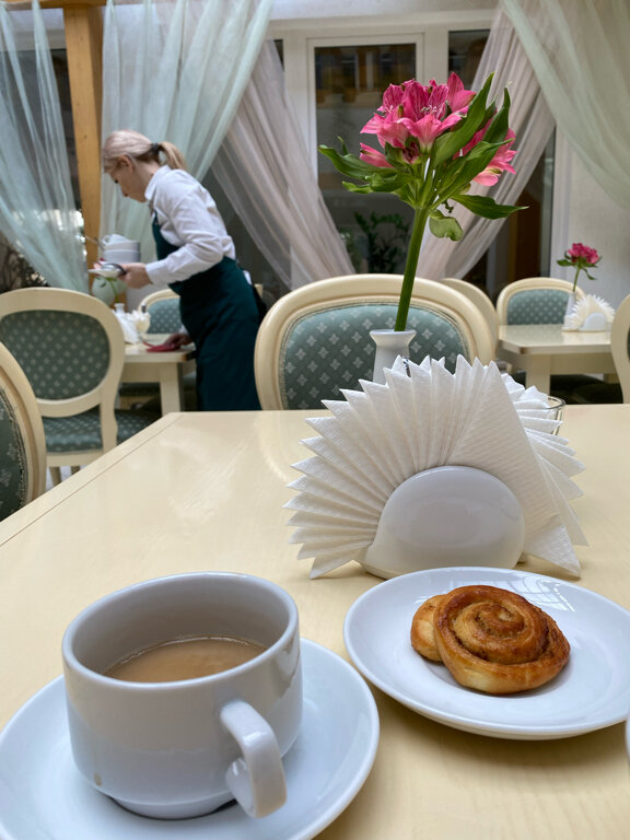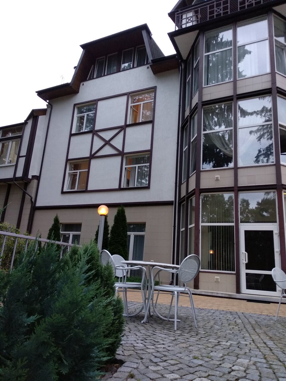 Расположение отеля очень удобное. В центре города, но шума не слышно. Территория большая, зелёная, красивая. Есть место погулять, есть терраса, где можно посидеть с бокалом вина или чашкой чая вечером. Завтраки однообразные, но все вкусно. Номер полулюкс просторный, кровать удобная. Туалетная комната большая. Полотенце огромное, я бы сказала махровая простынь. Уборка номера и смена полотенец каждый день. Очень рекомендую этот отель.