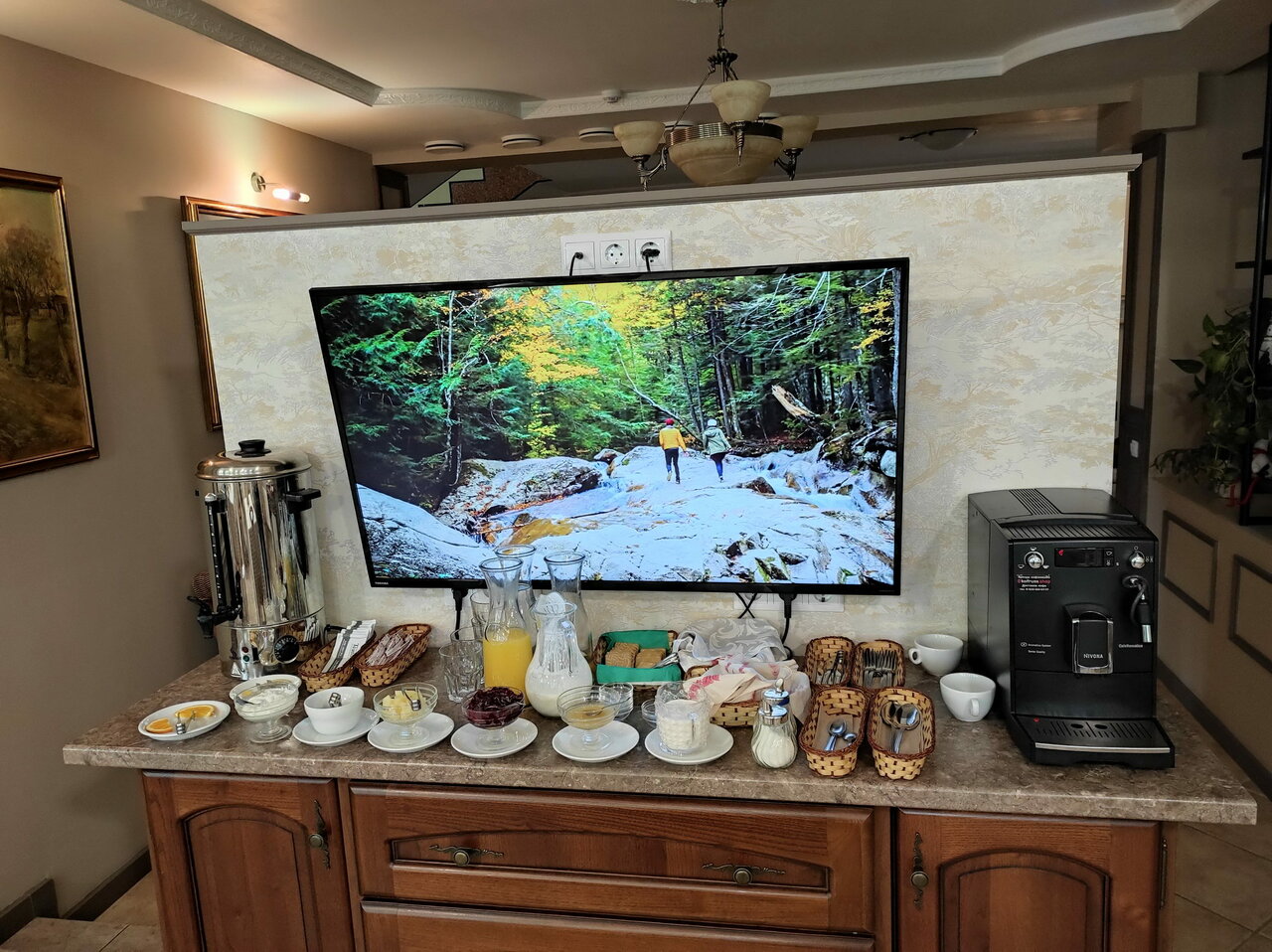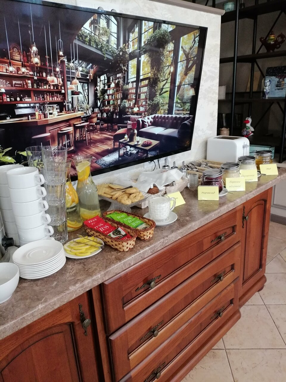 - Вкусные завтраки (шведский стол, свежие продукты, тёплый хлеб).