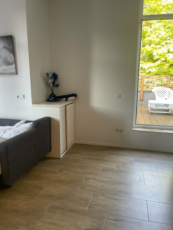 Прекрасное место для отдыха семьи с маленькими детьми! Просторные номера с кухней, тёплые полы, все принадлежности, приятное телу постельное белье, все необходимое для приготовления еды на кухне! Нам предоставили стульчик для кормления. Есть возможность постирать вещи, вся необходимая для стирки бытовая химия также предоставляется Спасибо Хозяину Алексею за гостеприимство и уют, — мы чувствовали себя как дома. Отдельную атмосферу создают окна в пол и поющие в парке рядом птицы. Рядом находится озеро Тихое, где есть классная детская площадка и кофе для родителей. До моря нам было довольно комфортно добираться даже с коляской , гуляя по красивому Светлогорску. Отдельное спасибо владельцам за специально закопанный янтарь в песочницу на территории отеля — дети были в восторге найти такой клад! Однозначно рекомендую.