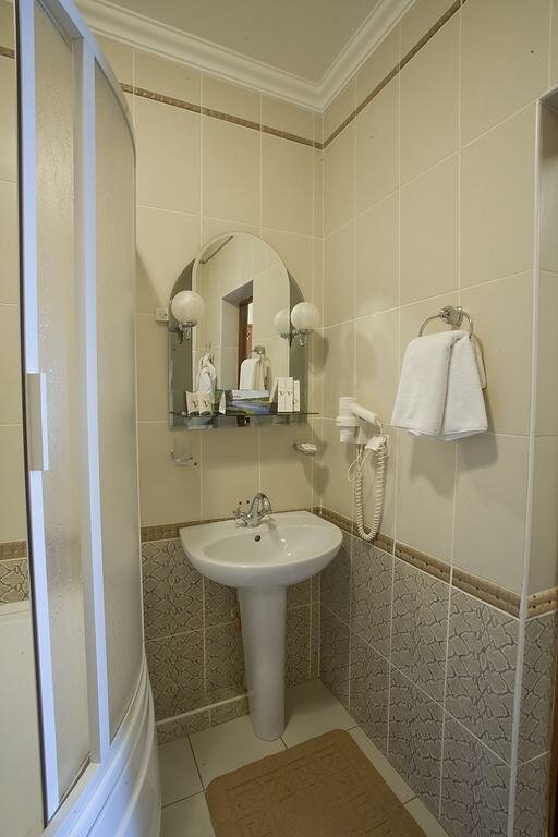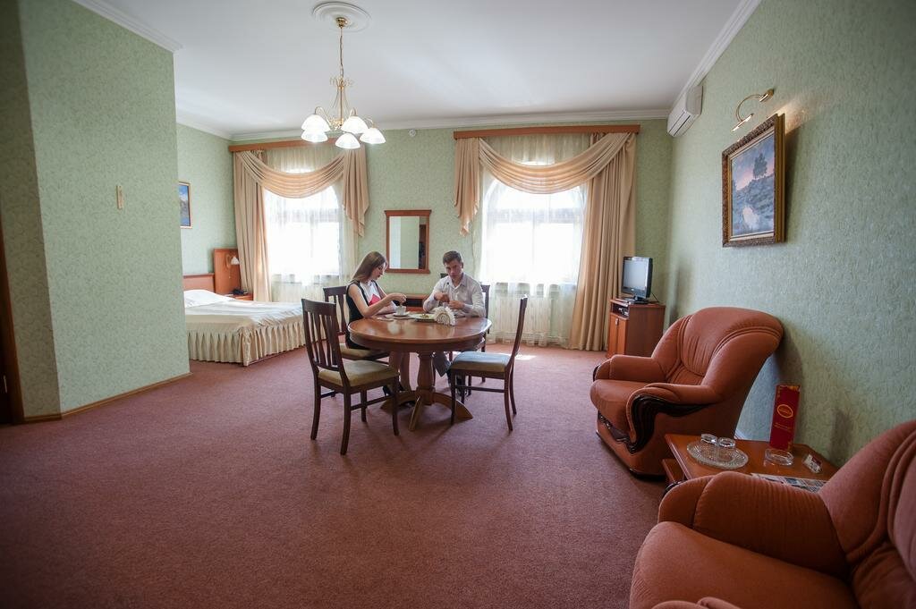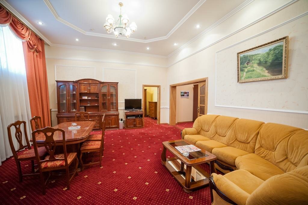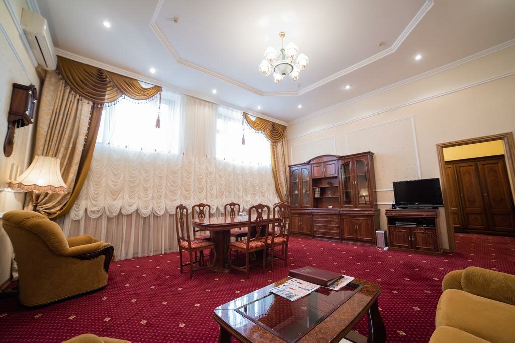 Говорил я коллеге, что надо брать номер люкс, но решили сэкономить конторские деньги. Хотя я не уверен, что люксы уж сильно лучше. В общем, внешний вид на 5+, холл на +5, номера на 3-. Почему? Из розеток только удлинитель, номера давно требуют ремонта, стандартный двухместный номер с раздельными кроватями нереально маленький. Санузел вроде бы и норм, но в качестве душа обычный поддон с заржавевшей снизу шторкой. Туалетной бумаги половина рулона, видимо сколько осталось от предыдущих жильцов. Кровати мягкие, хорошие, к ним претензий нет (я люблю пожестче, но в гостиницах уже привык). За сам отель я поставлю твердые 3*, но за то, что на рецепшн нас приняла просто сногсшибательная девушка неземной красоты я точно готов добавить звезду. Даже жаль, что мы были в этом месте всего лишь сутки. P.s. ресторан явно не стоит своих денег, лучше сходите в кафе неподалеку.