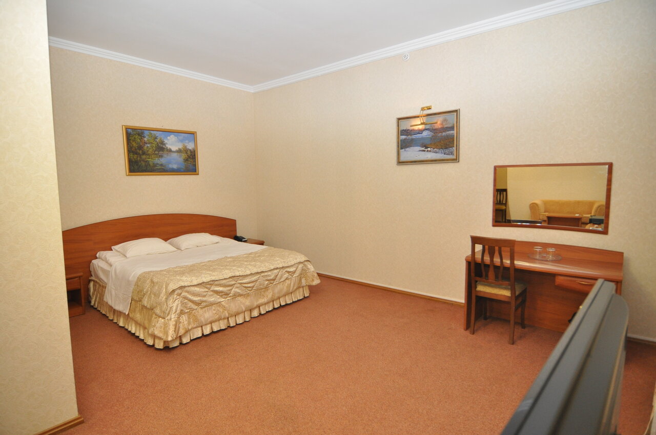Похоже, что владелец давно не следит за этим местом. Техника в ‘нелюксовых’ номерах почти вся не работает, шкафы и другая мебель рассохлась и скрипит как в фильмах ужасов. В душ зайти не хватило смелости, напор воды тоже никакой. Раньше были славные фитобочки в банной части, но они рассохлись и их не ремонтируют, в сауну ещё можно сходить, а вот в бассейн прыгать желания нет. Бильярдный стол и его утварь похоже стоят со времён основания г. Курска. Очень жаль, что такое приличное некогда место превратилось в убогий отель. Но нужно отметить персонал, люди и правда стараются, не смотря ни на что.