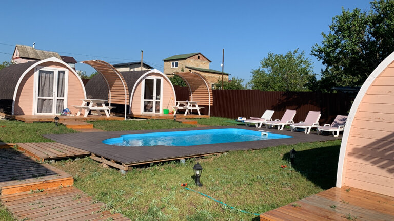 Добрый день!Хотела бы оставить отзыв о гостевых домиках) Отдыхали компанией с 19-21 июля,нам все понравилось:территория,уютные и чистые домики,бассейн,удобная беседка.Предоставляют чистое постельное белье,комплекты полотенец,фен,чайник,телевизор,шизлонги. В общем,мы остались довольны отдыхом!)