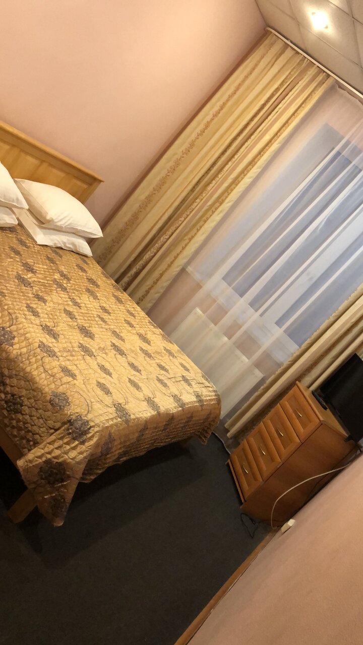 Хорошая гостиница и внизу кафе можно поесть. Отличные матрасы. Проспали выезд..