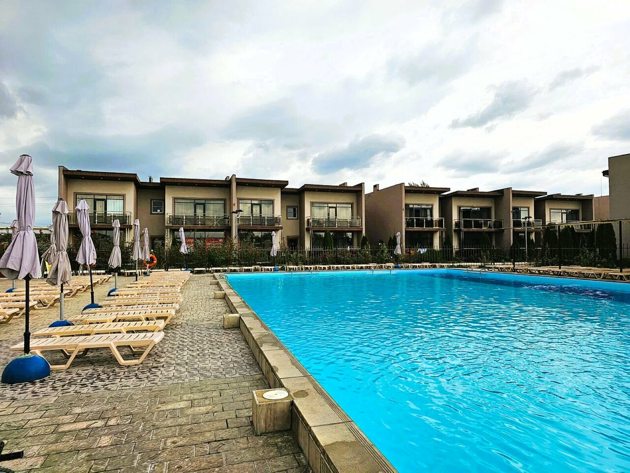 Отдыхали в номере в начале марта. Номер отличный. Все чисто, аккуратно, красиво. На территории есть бассейны (но это для теплого времени года), кафе. Заселение быстрое, легкое. Хозяйка доброжелательная, вежливая.