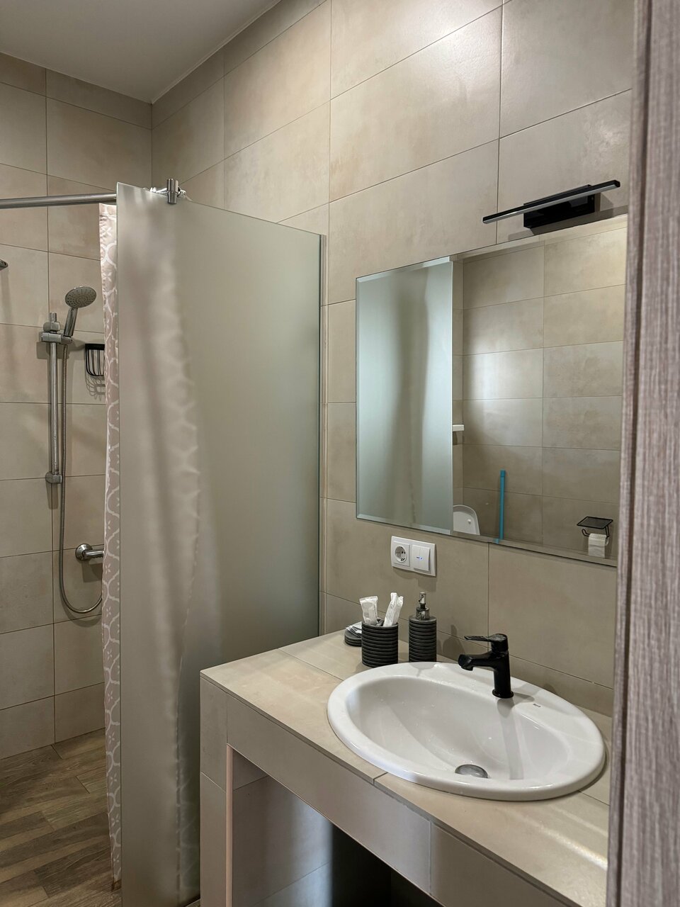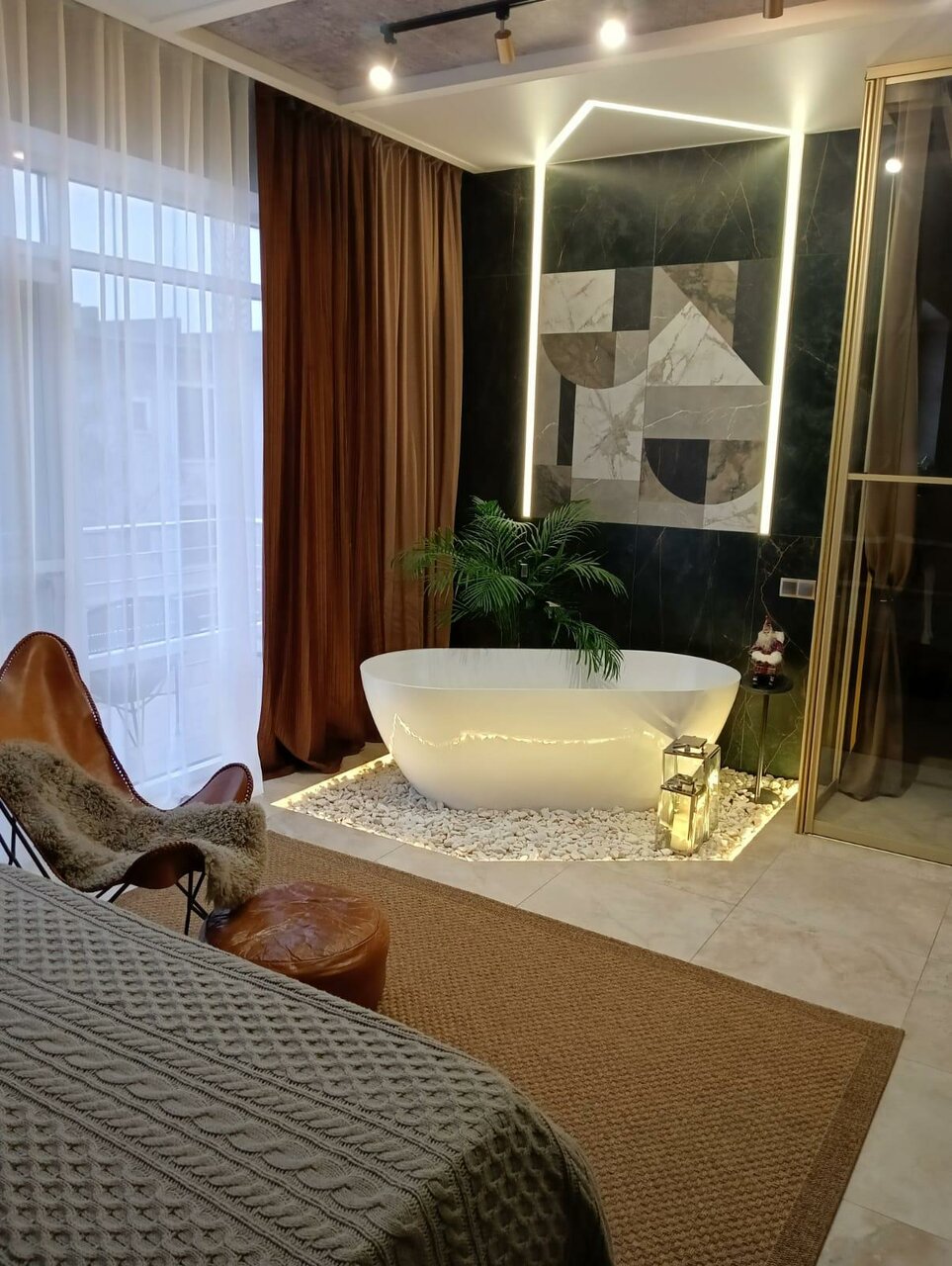 Очень смешанные чувства. Когда мы смотрели картинки, нас впечатлил красивый дизайн, интерьер, наличие бассейна. Но когда мы заехали, были разачарованы. В номере такое ощущение, что вообще не убирали, либо убирали но очень! давно! На полу видны следы притертости, т.е. его не мыли как положено, а подтёрли в нескольких местах, душевая тоже была в брызгах. На унитазе была надпись продезенфицировано, а по факту он был в такой пыли, что вся сидушка была грязная. Матрас явно видавший виды. На столешнице красное пятно от варенья, даже никто не соизволил помыть. Да есть посуда, тостер, кофеварка капельная, но всё ужасно грязное, ужасно! Стаканы пришлось навывать, чтобы ими воспользоваться. За 3 дня нашего прибывания уборки не было и мусор тоже никто не выносил. И это при цене в 8750р в сутки???? 750 это мы еще доплачивали за ребенка. Только за что непонятно. Находятся на берегу залива, но у них там промзона, центр и цивилизация в центре города, а не на берегу.