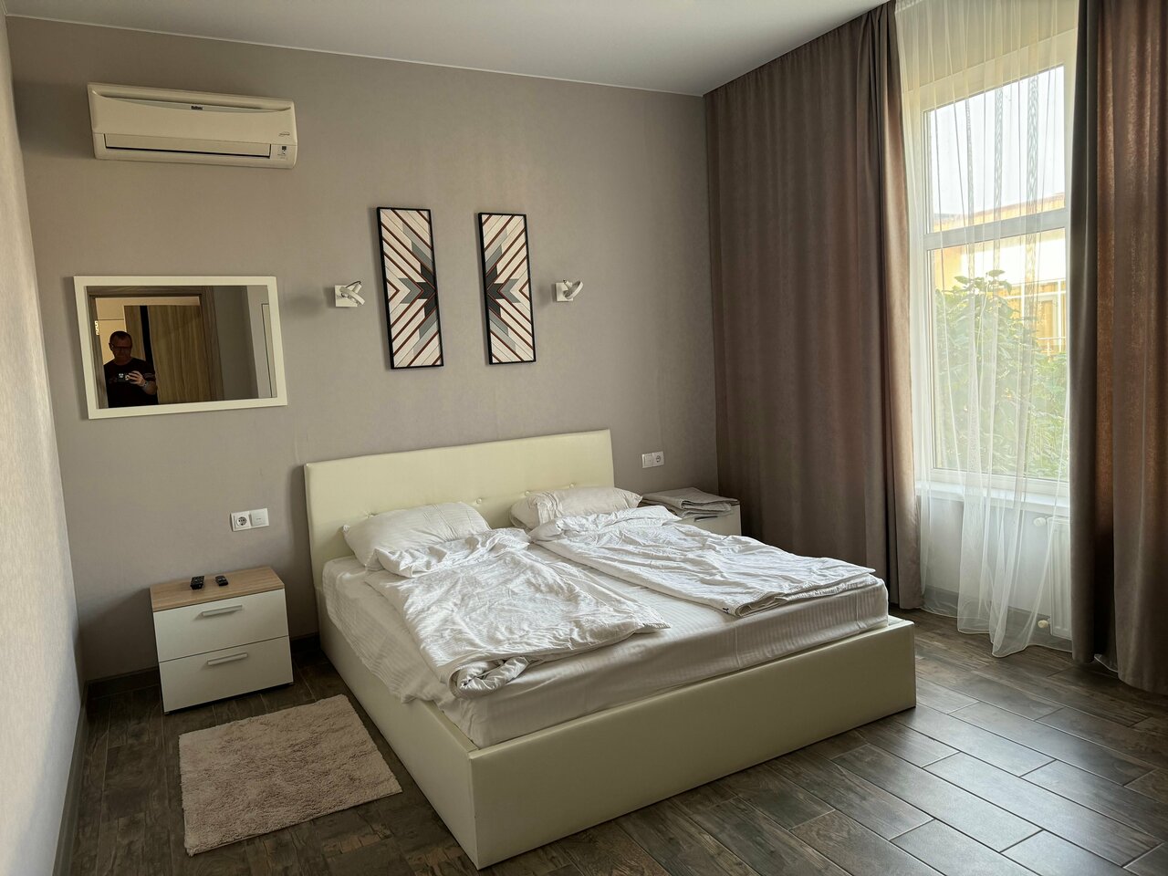 В номере одна двухспальная кровать, прикроватные тумбочки, журнальный столик, телевизор, холодильник, кабельное телевидение, wi-fi, сплит система.В ванной:туалет,раковина,набор палатенец,душевая.