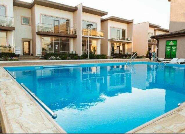 Апартаменты на первой линии Таганрогского залива, с собственной кухней и возможностью готовить еду. Тихо, спокойно. Есть два бассейна, один небольшой бесплатный, второй — большой, но за плату. Имеется кафе, но исключительно для перекуса. Лично мы ездили в центр на ул. Петровская для того, чтобы посидеть в кафе и вкусно покушать. На такси рублей 120-150. При вызове яндекс-такси обязательно обращайте внимание, куда вызываете. Навигатор плохо определяет место, на машине по навигатору тоже сложно кататься, теряется связь.