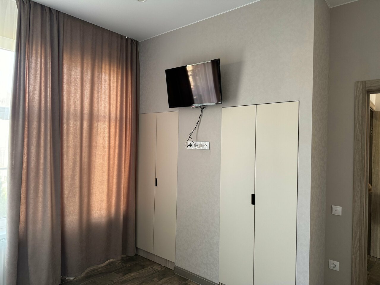 В номере две односпальные кровати, прикроватные тумбочки, журнальный столик,т елевизор, холодильник, кабельное телевидение, wi-fi, сплит система. В ванной:туалет, раковина, набор палатенец, душевая.