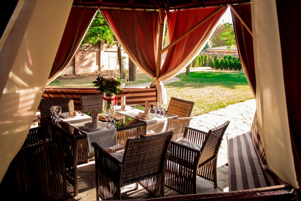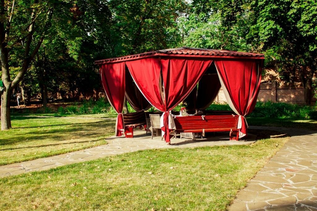 - Приятная зелёная зона на территории (беседки, лужайки).